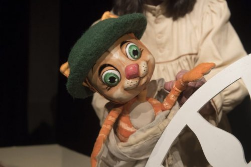 Jeden mlynár mal troch synov. Na smrteľnej posteli si zavolal všetkých troch k sebe, aby im rozdelil svoj majetok. Najstarší syn a prostredný syn dostali mlyn a najmladšiemu Jacquesovi sa ušiel kocúr. Kým dvaja starší synovia sa mali po otcovej smrti dobre, ten najmladší žil v biede. Keď zo svojej zúfalej situácie už nevidel východisko, rozhodol sa, že sa kocúra zbaví. Vtedy kocúr prehovoril ľudským hlasom a uprosil svojho majiteľa, nech ho nezmárni, ale nech mu radšej zaobstará čižmy a šaty. Ak to urobí, kocúr mu z biedy pomôže. Najmladší brat poslúchol a kocúr krok za krokom dokázal prostredníctvom vtipných nápadov dosiahnuť, že Jacques dostal dokonca nádherné šaty od samotného kráľa a ruku princeznej. Kocúr je v rozprávke nielen symbolom vynaliezavosti a nápaditosti, ale aj cnosti a vernosti, keďže stojí vždy pri svojom pánovi a pomáha mu. Inscenovania Kocúra v čižmách sa ujal ukrajinský režisér Sergej Bryžaň, ktorý sa v Bábkovom divadle v Košiciach predstavuje po prvýkrát. Scénografiu mala na starosti ukrajinská výtvarníčka Oľga Savicka. Podľa jej návrhov vytvorili umelecké dielne BDK až desať nádherných bábok, ktoré zobrazujú nielen hlavného hrdinu Kocúra v dvoch veľkostiach, ale aj ďalšie rozprávkové postavy. Inscenácia v sebe nesie okrem humoru aj výchovné posolstvo a detský divák sa dozvie, aké dôležité je byť čestným človekom, ktorý za žiadnych okolností nezľavuje zo svojich morálnych princípov.