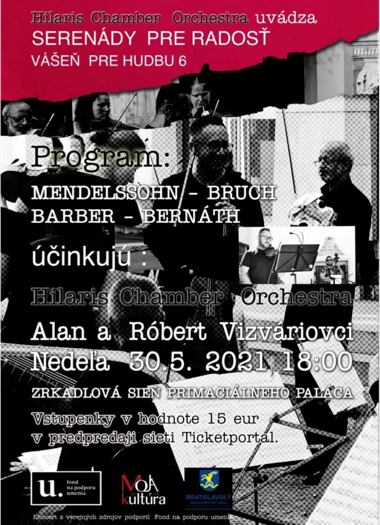 Obľúbený koncertný cyklus Serenády pre radosť – vášeň pre hudbu bratislavského súboru Hilaris Chamber Orchestra pod vedením Alana Vizváryho pokračuje v roku 2021 svojim 6. ročníkom v nedeľu 30.mája 2021 o 18:00 v Zrkadlovej sieni Primaciálneho paláca v Bratislave, v rámci ktorého uvedie okrem iného aj svetovú premiéru slovenského skladateľa Ľuboša Bernátha. Autor venoval orchestru Hilaris a sólistom bratom Alanovi a Robertovi Vizváriovcom dielo Concertino lamento pre husle, kontrabas a sláčikový orchester, ktoré vzniklo počas prvej vlny pandémie a podľa vlastných slovenského skladateľa je táto kompozícia akousi modlitbou za pandémiu.