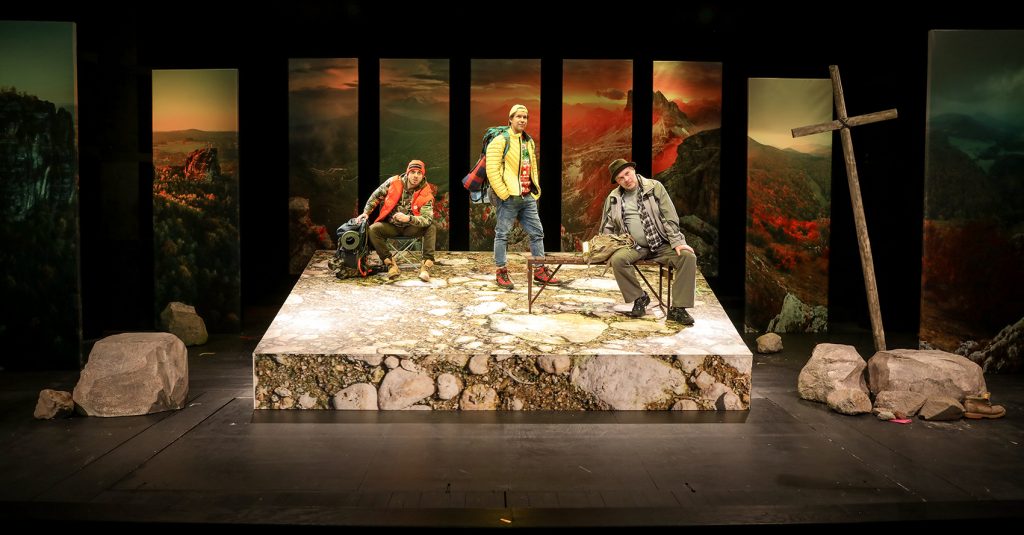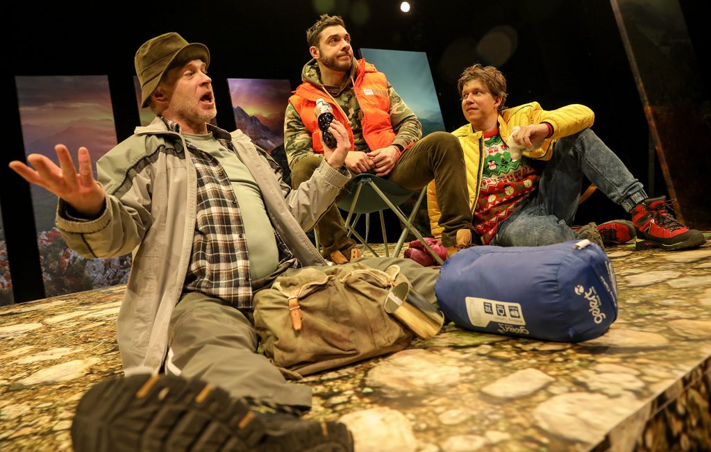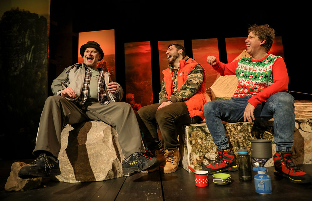 A čo sa týka hry, každá z troch postáv zastupuje istý archetyp muža, ktorý stojí pred problémom krízy stredného veku. A každý sa s tým vyrovnáva ináč. Konkrétne môj Robi, samoľúby búrlivák, sa po živote plnom slobody a milostných aférok, rozhodne usadiť a oženiť, lebo... už by sa patrilo. Ale spoločný pietny horský výstup s priateľmi za účelom uctenia si ich mŕtveho kamaráta, mu myšlienky usporiada opäť trocha inak."