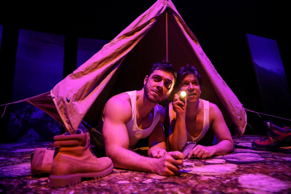 Po piatich mesiacoch v online priestore Divadlo Nová scéna otvára brány divákom. A to dňa 14. mája 2021 o 18.00 hod., kedy uvedie slovenskú premiéru komédie svetovo uznávaného britského dramatika Petra Quiltera VÝSTUP (THE HILL). V komédii o sile priateľstva a kríze stredného veku sa v réžii Svetozára Sprušanského predstavia traja členovia súboru Divadla Nová scéna Marcel Ochránek, Martin Kaprálik a Pavol Plevčík. Hra mala online premiéru 25. februára 2021.