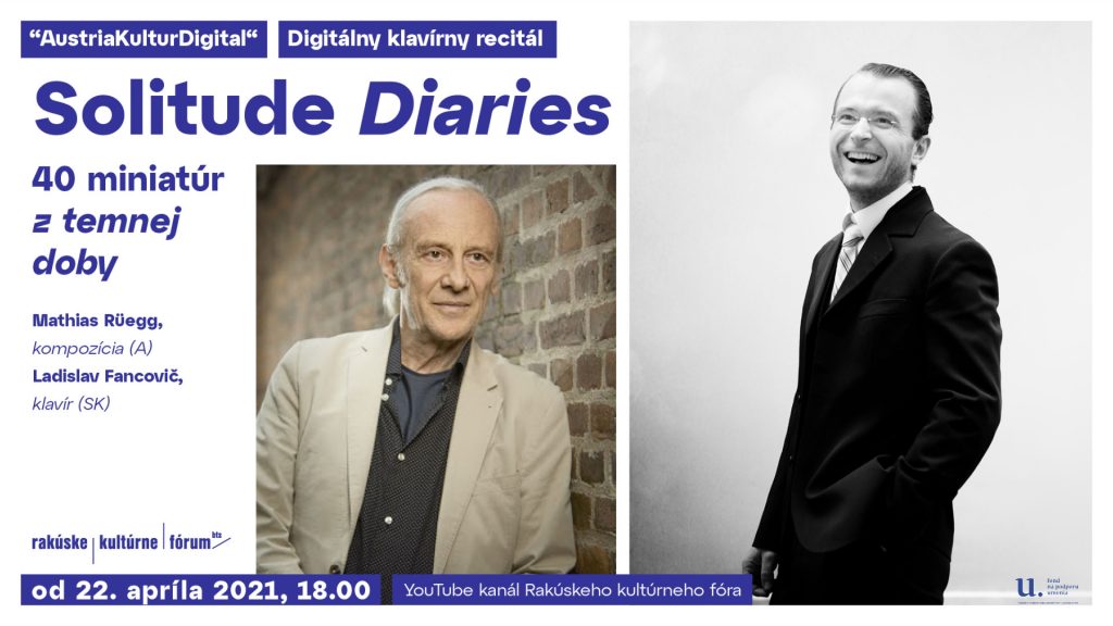 Klavírny recitál našej interpretačnej špičky – klavírneho virtuóza Ladislava Fančoviča, prinesie 22. apríla o 18:00 v online priestore výnimočný repertoár. V premiére zaznie cyklus skladieb švajčiarskeho autora Mathiasa Rüegga - Solitude Diaries /Denník samoty.