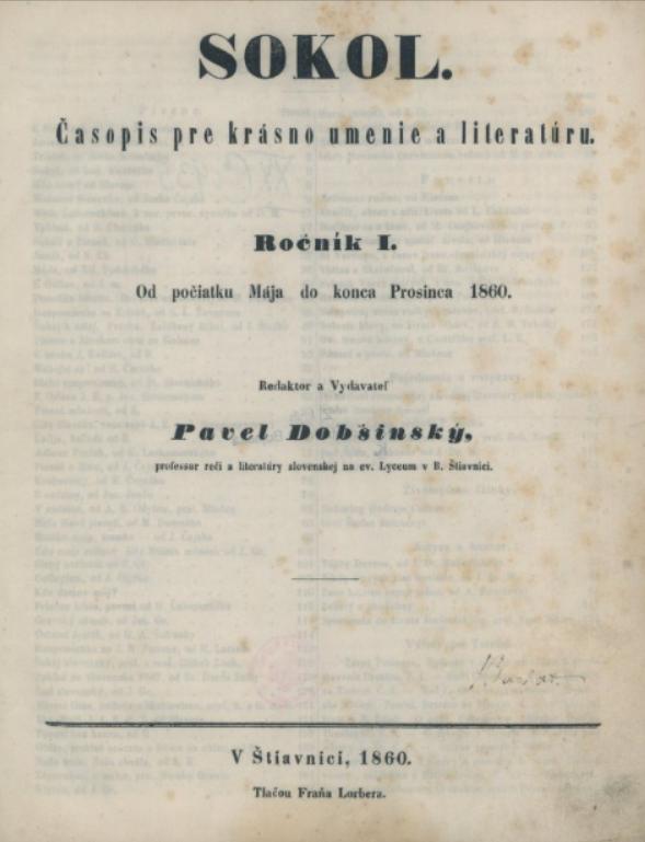Rok 1858 znamená veľkú zmenu v Dobšinského živote. Získava totižto miesto profesora na novozriadenej Katedre slovenskej reči a literatúry na evanjelickom lýceu v Banskej Štiavnici, kde pokračuje i jeho publikačná činnosť a to časopisom Sokol, ktorý svojim obsahom významne ovplyvňuje vtedajší kultúrny život. Na jeho stránkach sa objavujú príspevky a tvorba Sama Chalupku, Andreja Sládkoviča, Jána Botta i Janka Kráľa a iných. Pod tlakom okolností sa v roku 1861 Dobšinský vzdáva vydavateľských činností a odchádza na Gemer, do dedinky Driečany, kde až do svojej smrti v roku 1885 pôsobí ako miestny farár.