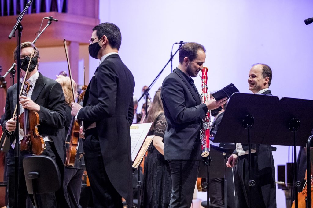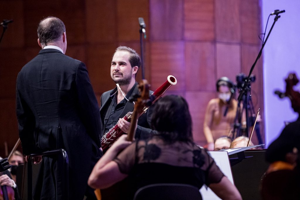 Beethovenova Symfónia č. 1 C dur, Op. 21 priniesla v druhej časti pripomienku vlaňajšieho „roka Beethovena“, ktorý sme si v hudobnom svete pre pandémiu nemohli patrične uctiť. Aj keď sú v nej zreteľné vplyvy Mozarta a Haydna, predsa len v nej už skladateľ pracuje s odvážnymi harmonickými postupmi a výrazovými prostriedkami, na ktoré sme uňho zvyknutí. Čím viac toto dielo človek počúva, tým viac v ňom dokáže objaviť na jednej strane krásu a vyváženosť klasicistickej čistoty, no na druhej typický autorov rukopis a najmä jeho odvahu. Hneď v prvej časti Adagio molto. Allegro con brio necháva zneistieť poslucháča tým, že uvádza akordy vzdialené od základnej tóniny diela – sledom septakordov sa neustále vyhýba tónickému akordu. Tento hudobný žart nemusíte ani študovať v notách, cítite ho vo vnútri ako napätie v hudbe, keďže sa neviete presne zorientovať. S miernymi rytmickými nepresnosťami v nástupoch a nečistými dychovými partmi sme sa po pomalej introdukcii dostali k svižnej téme – tá už nesie typické znaky obdobia klasicizmu. Orchester po vedením šéfdirigenta Zbyněka Müllera hral allegro s výborným nasadením, radosťou, triezvou vyváženosťou, s potrebnou ľahkosťou vyspieval opakujúcu sa tému (početné sóla v podaní hobojistky Zuzany Kurimskej Grékovej zneli nádherne a čisto), gradačné úseky mali v sebe potrebnú drámu – napríklad neobvykle stavaná Coda, ktorá zreteľne pripomenie tematicko-motivickú prácu a vygraduje do sledu akordov celého orchestra (zahratých s dobrou dynamikou a pregnantnou rytmikou).