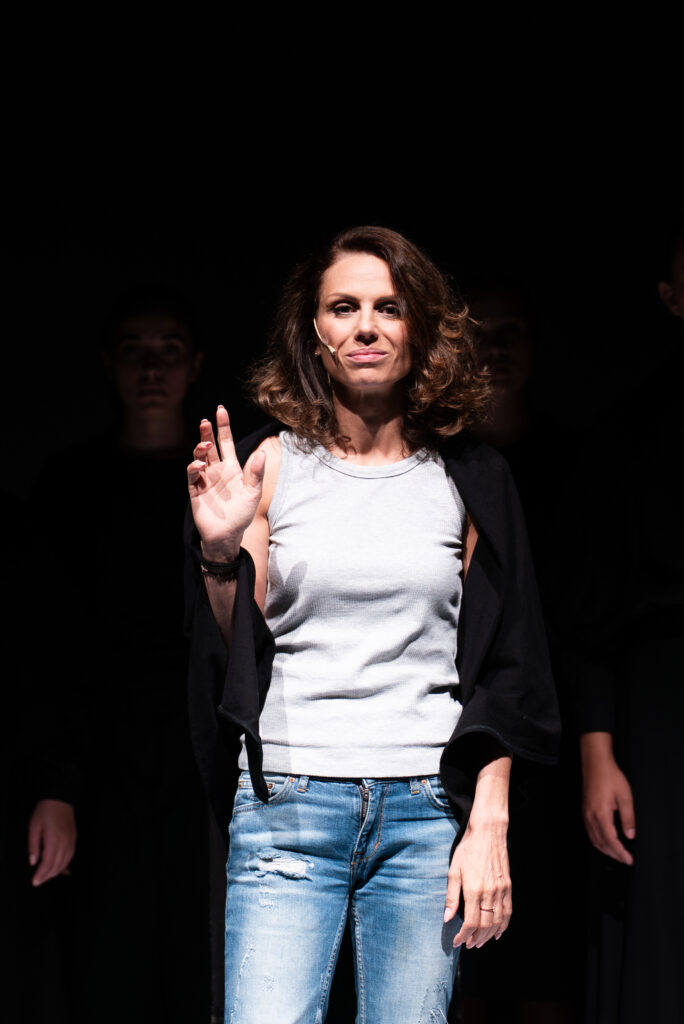 V kontexte civilných a emočne náročných výpovedí pôsobí jej výzor a pohybová štylizácia až vytrhujúco groteskne. Herečka Monika Šagátová v tejto role evokuje metaforu cynizmu doby, ktorá potrebuje zabávača aj pri tých najvážnejších témach, zároveň však evokuje aj vnútorný obranný mechanizmus, v ktorom sa za klaunskou maskou skrýva hrôza neúnosná vo svojej plnej nahote. Hoci tieto výklady ponúkajú isté možnosti interpretácie, v konkrétnej inscenácii pre mňa postava kabaretiérky zostáva významovo neuzemnená a neuchopiteľná.