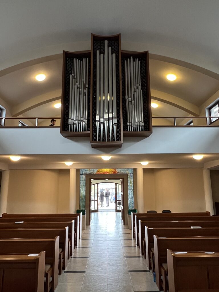 Kláštor je už z veľkej časti dobudovaný, ale kostolu stále chýbal organ. Mníšske spoločenstvo nesiahlo hneď po lacnejšej verzii digitálneho nástroja. Práca mnícha má tri podmienky: dôsledná, dynamická, do konca. V rámci tejto „pracovnej filozofie“ si počkali na stavbu píšťalového organa. V roku 2022 oslovili Organárske dielne Žilina bratov Muškovcov. Koncom leta 2023 sa rozbehli prvé práce na novom nástroji, ktoré trvali až do januára 2025. Okrem kolektívu Organárskych dielní Žilina, pracovali na organe aj viacerí subdodávatelia, najmä Michal Kenis (výroba kovových píšťal) a Otto Heuss GmbH (elektrické komponenty, časť hracieho stola). O finálnu podobu zvuku sa postaral český intonér Tomáš Fafílek. Píšťalový organ je finančne nákladná položka, ale mníchom sa postupne podarilo vyzbierať dostatočnú sumu (aj cez akciu „Adoptuj si píšťalu“), aby organ mohol byť postavený.