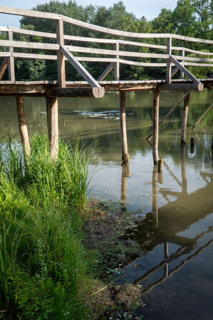 Kresánek dodáva, že v Tomášikove vidíme aj druhú plošinu, ďalej od stavby s technológiou, na ktorej je nosné drevené ložisko jednej strany hriadeľa vodného kolesa na strane mimo stavby s technológiou. Kvôli sústredeniu vodného prúdu boli v koryte Malého Dunaja pôvodne aj dve hate z kolov a prúteného výpletu. Do objektu mlyna vedie premostenie drevenou lávkou.