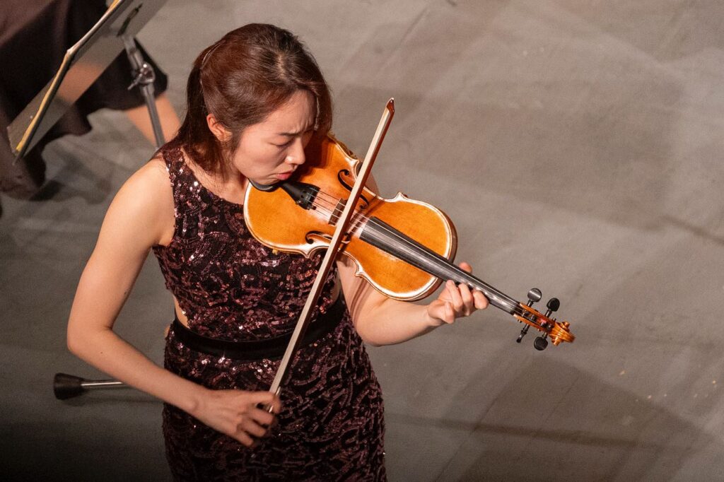 Čajkovského Koncert pre husle a orchester D dur s juhokórejskou sólistkou Yoon-Hee Kim bol ďalším bodom programu. Čas, kedy sa človek vytočil do „vývrtky“ už pri orchestrálnej expozícii. Hrať neangažovane, bez ducha, bez precítenia a dynamiky, keď nie je dostatočne kvalifikovaný partner, na to je Slovenská filharmónia nekorunovaným kráľom. Akonáhle má priemerného sólistu, orchester sa elegantne uspôsobí a hrá podpriemerne. Chýbala vznešenosť, pekné, vyvážené piano – expozícia bola školácky neprecítená, len do taktu, bez potrebnej dynamiky, nieto ešte lyriky a majestátnosti. Žiadne crescendo, len náhly skok do necitlivého fortissima, uzavretie expozície bez vkusnej agogiky. Človek až žasne, čo dokáže náš prvý orchester – a následne sólistka, ktorá v každom jednom takte hrala doslova proti hudbe. Namiesto dolce prudkosť, v miestach, kde človek očakáva lyrickú spevnosť, hranie po takte, alebo naopak, absolútne neadekvátna práca s agogikou. Nezachytiť melodiku, Čajkovského vrúcnu kantilénu, je hriech, ale nemusí ju cítiť každý. No ísť v protismere a tváriť sa, že presne takto má interpretácia hlavnej témy prvej časti znieť, vyznelo tak trochu ako paródia. Pridávanie dynamiky v koncoch fráz, keď sme čakali stíšenie, spomalenie v miestach, kde sa hudba stala prudkejšou a dramatickejšou, práca s tempami ad hoc – bol to skôr herecký prejav ako hudobný.