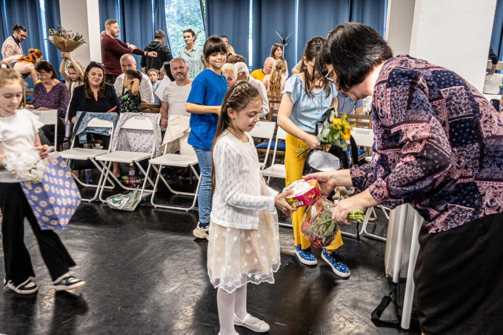 Priznám sa, nič dojemnejšie som ešte v živote nevidela. Ak sa triedne či absolventské koncerty profesionálnych ZUŠiek sústredia na čo najlepší a bezchybný výsledok (už mi len trstenica chýba v rukách niektorých pedagógov) a vy s maličkou dušičkou sledujete zostresované klbká detí, ako sa z povinnosti „dogúľajú“ na pódium a trasúcimi rukami bezchybne odohrajú vydrilovaný materiál, tak tento koncert bol presným opakom. Vládla tu radosť, spontánnosť, potešenie zo zážitku, spokojnosť, že sa interpretačný výkon podaril, zároveň ste z diaľky vnímali, ako rad za radom padali zo sŕdc detí obrovské kamene úľavy. Bol to koncert, ktorý pohladil dušu, koncert, ktorý ukázal láskavosť, pevné medziľudské putá a dobro, ktoré nám, dospelým, dokážu ukázať práve detské duše. A navyše, všetkým žiakom sa ušli diplomy, čím získalo podujatie na vážnosti a profesionalite.