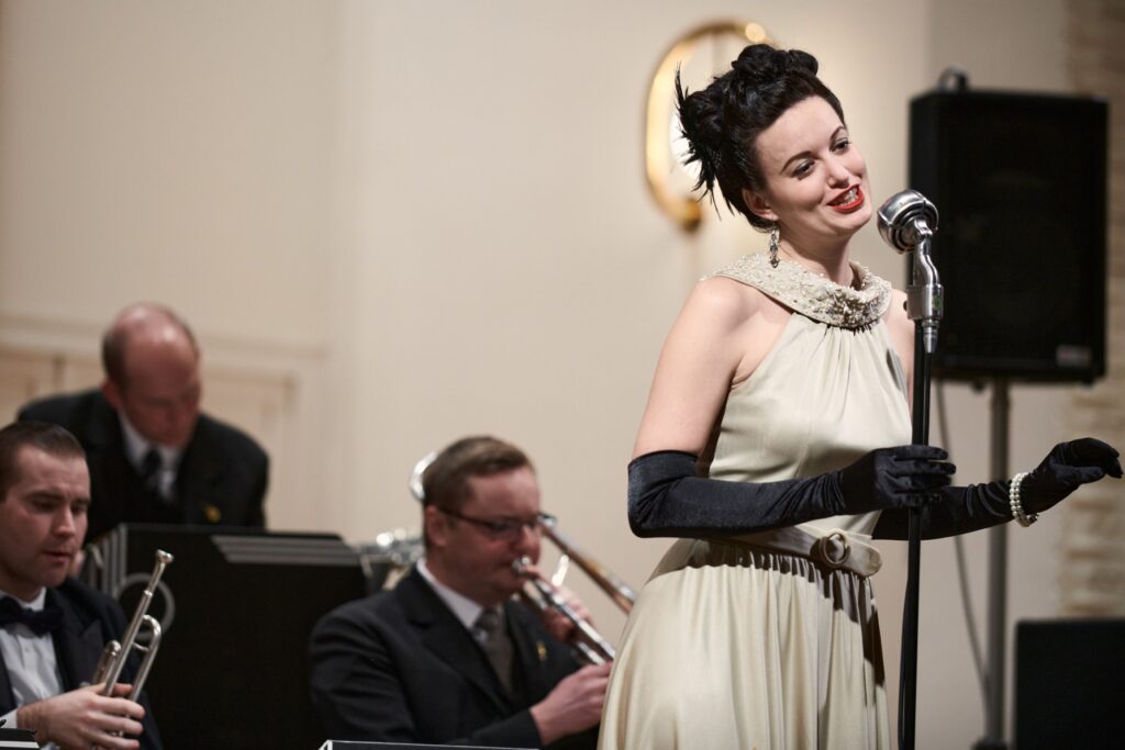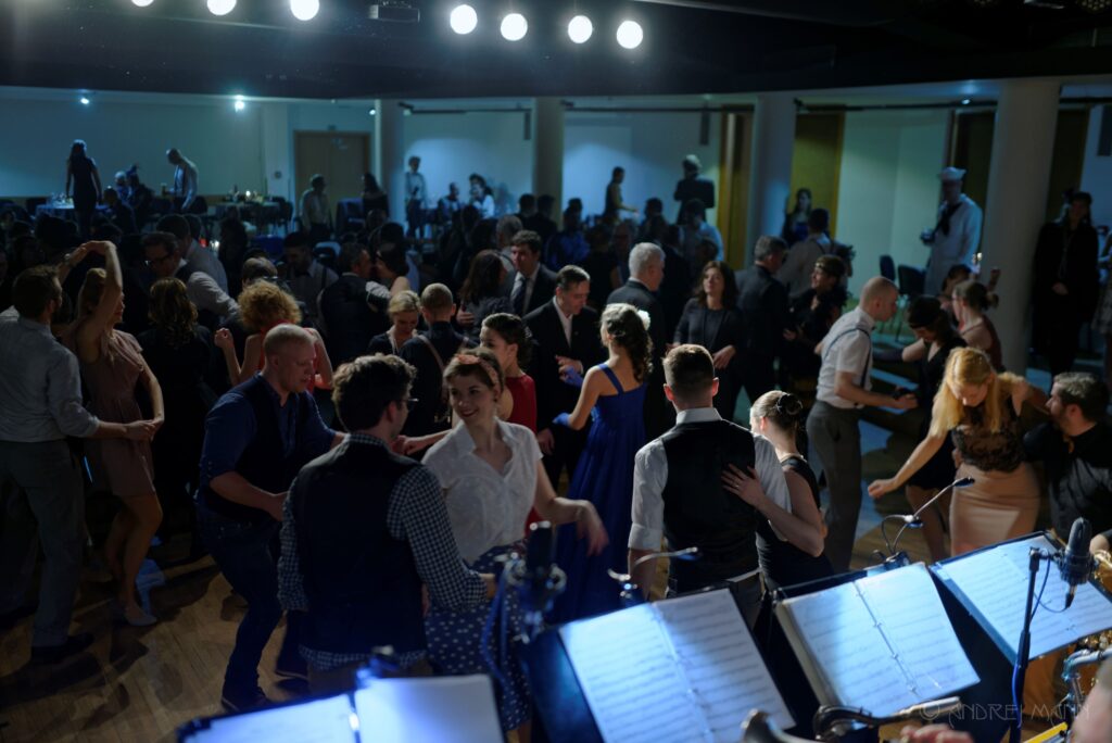 Po celý večer hrá swingový orchester FATS JAZZ BAND od vedením Ladislava Fančoviča. Zatancovať si budete môcť na najhorúcejšie swingovky ale aj tangá a foxtroty z našich, vtedy ešte československých vôd. Tanečná škola B-SWING Vás naučí základy niektorého z dobových tancov.