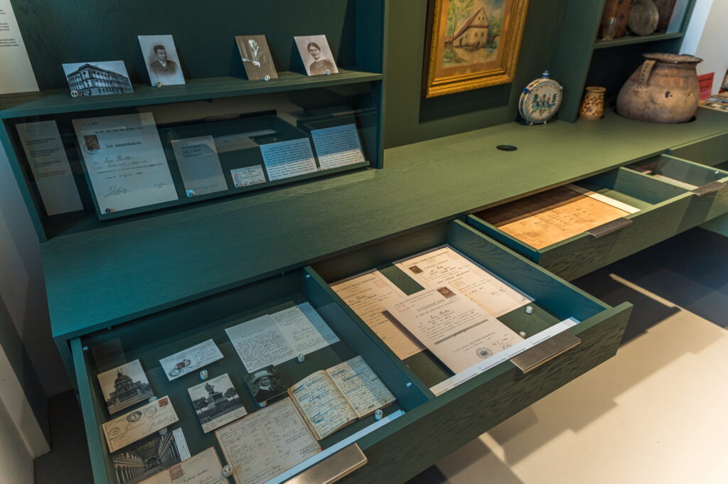 Dve miestnosti expozície zariadené pôvodným zariadením sme dali zrekonštruovať ale čo sa týka zariadenia a filozofie ich prezentácie, zachovali sme ich v pôvodnej podobe. Táto je z obdobia krátko po smrti básnika keď v byte zostala žiť jeho vdova Elena Bottová.