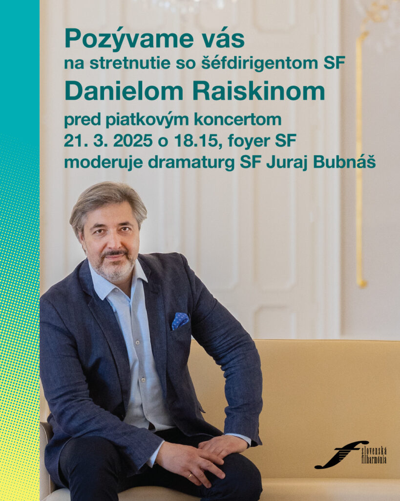 Pred piatkovým koncertom 21. marca sa uskutoční stretnutie so šéfdirigentom Danielom Raiskinom a dramaturgom Jurajom Bubnášom s pútavým rozprávaním o piatkovom programe. Začne sa o 18.15.
