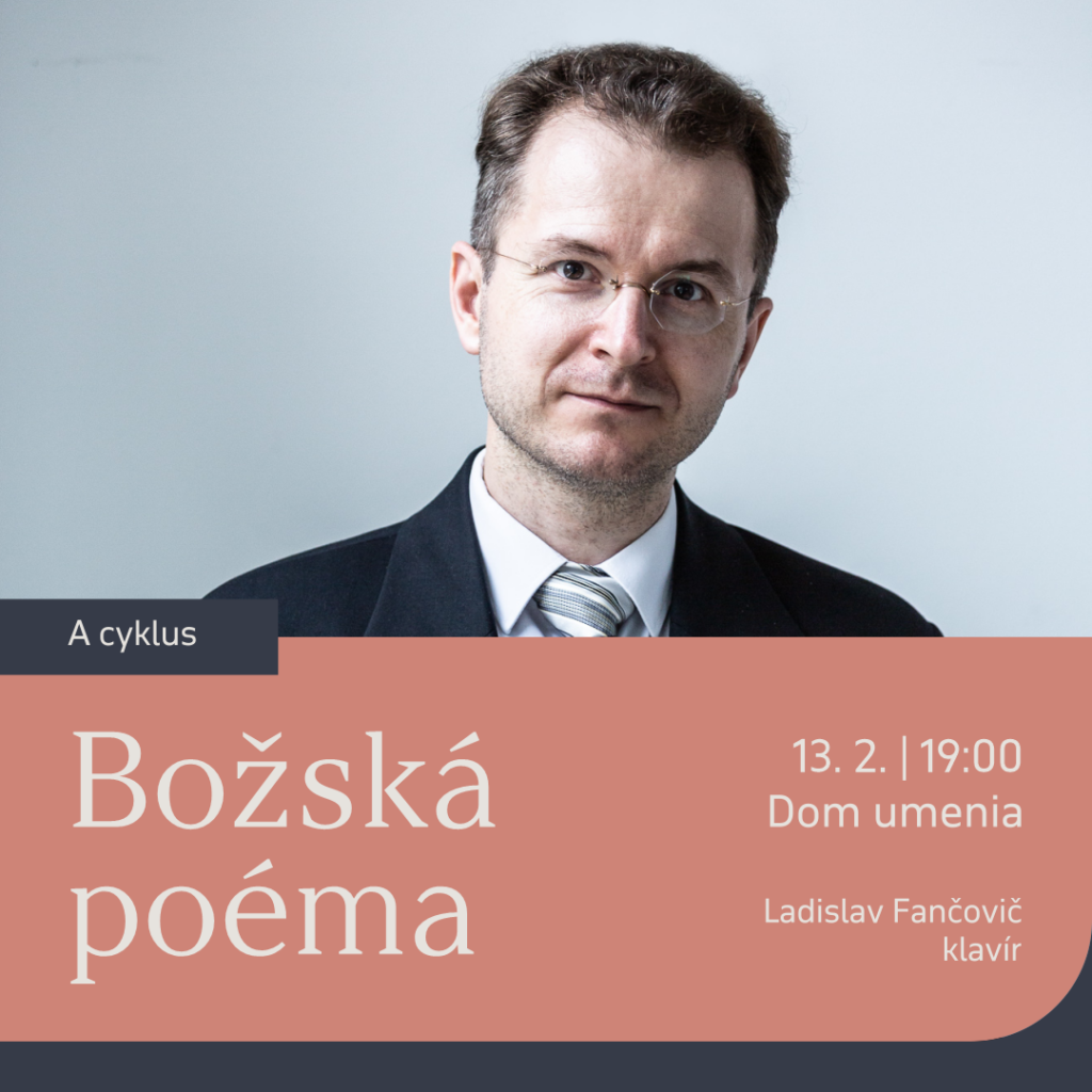 Koncert z abonentného cyklu A s názvom BOŽSKÁ POÉMA sa uskutoční vo štvrtok 13. februára 2025 o 19:00 v Dome umenia. Cena vstupného je 15/12/10 €, v lóži 19 €. Vstupenky na podujatia ŠFK sú v predaji aj so zľavami 30 percent vo vstupenkovej pokladni Domu umenia od pondelka do štvrtka (10:00 – 12:00, 14:00 – 17:00) a hodinu pred podujatím, ako aj online na webe www.sfk.sk.