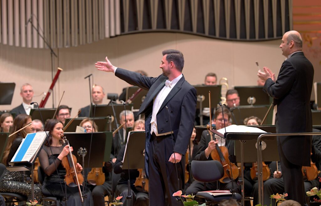 Z tretieho dejstva opery znel duet Noriny a Ernesta. Výraznou posilou dámskych sólistiek v tento večer bol spevák, ktorého môžeme poznať aj z hosťovania v NDKE Juraj Hollý. Možno úvodný duet nevyšiel celkom ideálne z pohľadu nasadenia tónov vo výškach a ich stability, no jeho lyrický prejav presvedčil. Od Donizettiho znela v prvej polovici aj obľúbená ária Una furtiva lagrima, romanca Nemorina z 2. dejstva opery Nápoj lásky. Hollý má peknú farbu hlasu, je znelý, dostatočne objemný, dobre vyvážené registre a na tomto koncerte zasvietil. Ešte viac plastickosti vo výraze, pochopenia pre hĺbku emócií, rovnomernejšieho rozloženia síl v tomto romantickom kuse – tento spevák má rozhodne veľký potenciál.