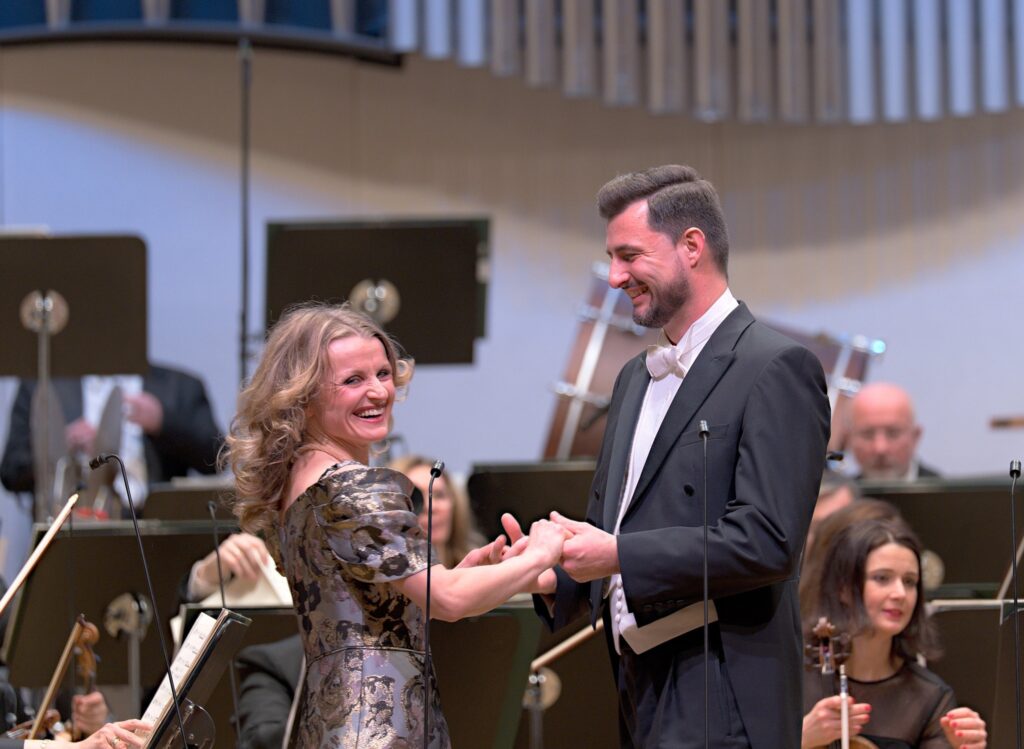 Najviac však publikum reagovalo na Lehárov koncertný valčík Zlato a striebro. To sú diela, ktoré prešporskému publiku zaručene konvenujú. Delikátny zvuk huslí známej melódie, opakovanej v dychberúcom pianissime, charakteristická rytmika s pulzáciou v nízkych polohách sláčikových nástrojov, tak i dramatická časť v rýchlejšom tempe, rozcítila obecenstvo. A možno namiesto návratu k Donizettimu, mohol koncert pokračovať práve v tomto duchu. Chápem však rôznorodosť druhej časti, chcela priniesť žánrovú a autorskú pestrosť. Bernsteinovu Predohru k operete Candide, ktorú v podaní nášho orchestra len ťažko akceptovať (najmä keď viete, ako má znieť), uzavreli dva prídavky: Finále zo suity baletu Bratislavský majáles a Pieseň o rodnej zemi, na ktorej už bolo cítiť únavu speváčok. Dusíkova pieseň však má magický účinok na slovenské publikum – funguje vždy a za každých okolností.