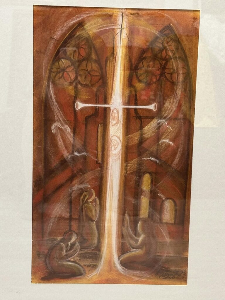 Pri niektorých obrazoch som sa snažila zachytiť výjavy, ktoré som skutočne videla v chráme u kapucínov. Boli to línie naznačujúce kríž. Uvedomila som si, že ten kríž je vytvorený z poľníc. Videla som aj siluetu, postavu. V roku 2000 som sa to snažila zachytiť na svojich obrazoch.