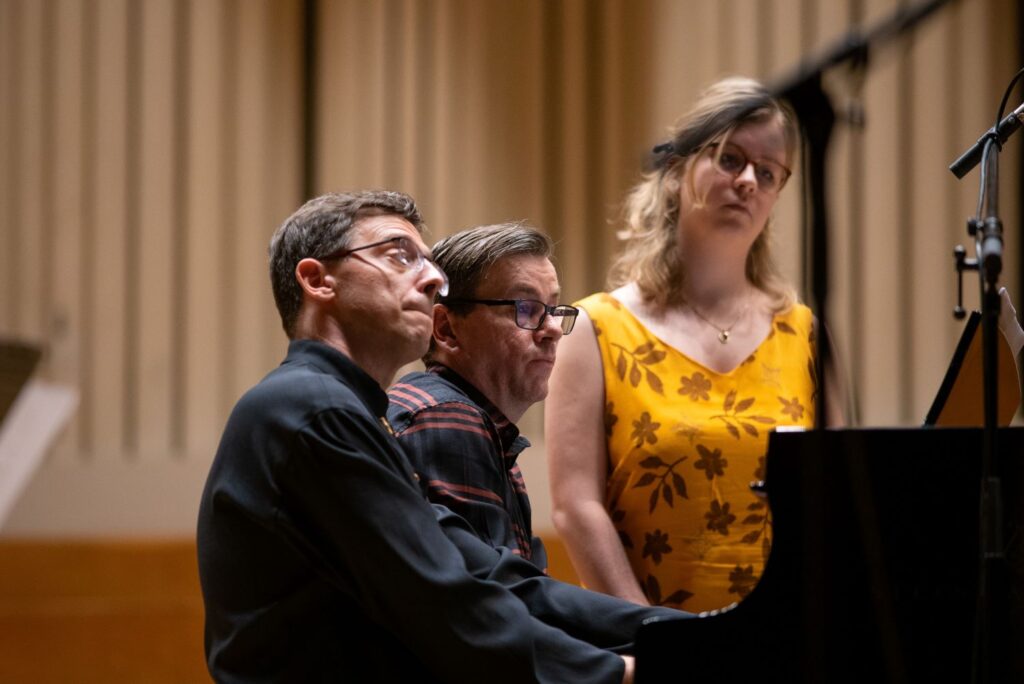 Aj v prvej časovo rozsiahlejšej skladbe večera v Sonáte C7 pre klavír a elektrický klavír v podaní Ivana Šillera a autora si návštevníci koncertu opäť mohli všimnúť typické znaky Borošovej poetiky. Rytmicky výraznú prvú časť, Ouverturu zdobí téma v oktávach. Postupne vďaka narábaniu s jej rytmickým pôdorysom naprieč akustickým i elektrickým klavírom vyústi až do kadencií “špinavej harmónie”. Miestami sa to podobá, až akoby esencii barokových variácií – nad ustáleným “vzorcom” sa odvíjajú ďalšie vzťahy vytvárajúce stále nové súvislosti. Netypické zvukovosti zmietajúce sa vo víre valčíka predstavujú akýsi prvý vrchol smerujúci k typickým kadenčným postupom, ktoré sa vymykajú stereotypom. Opätovná repetícia gradačne postupuje od rytmického variovania intervalov cez rozklad akordických komplexov až k masívnym arpeggiám. Tie postupne blednú k oblúkovito sa nevracajúcemu úvodu. Druhá časť, Andante con danza nadväzuje na prvú úvodným motívom. Tu je však značne úsečnejší, čo sa prejavuje aj v zábavnej figúre elektrického klavíra v štýle “boogie woogie”. V kontexte tejto časti je, ale oveľa dôležitejšie zdôrazniť ďalší znak Borošovej poetiky, a to simultánnu existenciu rôznych vrstiev hudby, prekrývajúcich sa no zároveň samostatne existujúcich. Akustický klavír postupne až úplne preberá motívy elektrického a naopak. Poslucháči sú pod paľbou neustále obmieňaných rytmických, harmonických i melodických vzorcov. Akoby to bolo vlastné Borošovo laboratórium, ktorý skúma, čo všetko sa vlastne môže stať. Aká hudba môže vzniknúť? Neustála tvorivosť buduje stále nové a nové vzťahy a stojí za nekončiacou variabilitou základného motivického prvku. Tretia časť, Choral scherzo je vystavaná na koexistencii statického a dynamického motivického prvku. Nad málo sa meniacim organom sa odvíja pohyblivý ozdobný akustický klavír. Ich vzájomné permutovanie poodkrýva opäť zaujímavé zvukové konštelácie, avšak nie v akomsi vrstvení, ale v jasne rytmicky vyhranených motívoch. Mierne prekvapivý meditatívny záver uzatvára a pointuje, no zároveň aj nadväzuje na to, čo sa vykryštalizovalo počas priebehu, odvolávajúc sa pritom na predchádzajúce časti. Štvrté Intermezzo je opäť veľmi poslucháčsky zrozumiteľné. Po rytmických variovaniach, koexistencii vzájomne dvoch kontrastných prvkov dochádza k typickej „klastrovosti“ odomykajúcej dvere ešte zaujímavejším zvukovostiam. Boroš veľmi rád vrstvením rôznych motivických základov alebo prostredníctvom stupnicových behov či vzájomne koexistujúcich kadencií akordických komplexov vytvára klastre, resp. esencie klastrov. Na ďalší dôležitý prvok Borošovej poetiky poukazuje piata časť, Finale con drone. Protipohyb dominuje nad opätovnými rytmickými hrami intervalov ústiacich rozkladom a napokon až k samotným arpeggiám. “Špinavú harmóniu”, tvorenú na pozadí, tonálne ukotvuje bourdon nepatrne sa objavujúci na pozadí celého diania. Práve ním sa vytvára akoby červená niť pokrivenej charakteristickej disonancie. Záverečná časť, Coda, attacca je postavená na kontrastnosti sadzieb medzi dvoma zúčastnenými nástrojmi ako aj motívov. Zatiaľ, čo akustický klavír napreduje rozmanitými rytmami, ten elektrický je až nepríjemne úsečný, čo vyvrcholí pravidelným opakovaním jedného jediného tónu. Práve dôraz na rytmizáciu hudobného procesu príjemne kontrastuje so záverečnou pasážou, ktorá aj napriek neustálej rytmizácii postupne odkrýva všakovaké možné podoby dominantného septakordu. Otvorený koniec môže filozoficky súvisieť s účelom dominanty, ktorá je vo väčšine prípadov vždy mostom k novému prostrediu.