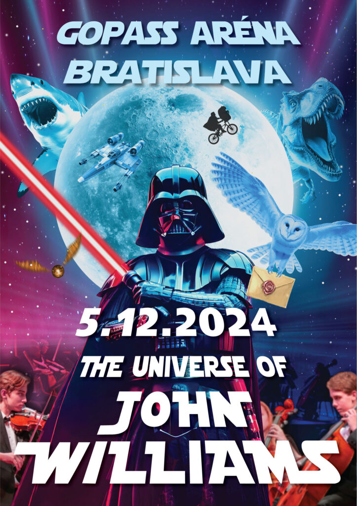 Americký skladateľ filmovej hudby John Williams má na konte obrovské množstvo cien. Vďaka 52 nomináciám na cenu Oscar ho označujú za najviac nominovaného žijúceho umelca na Cenu Akadémie. Slovenskí fanúšikovia majú teraz po prvýkrát možnosť vypočuť si jeho slávne skladby naživo. Diváci sa môžu tešiť na nesmrteľné skladby z filmov Star Wars, Jurský park, Harry Potter alebo E.T. mimozemšťan. Nebudú chýbať ani titulné melódie k filmu Čeľuste a Indiana Jones. Mnohých prekvapí aj oficiálna hymna Olympijských hier, ktorú John Willliams zložil pre sviatok zimných športov v Salt Lake City.