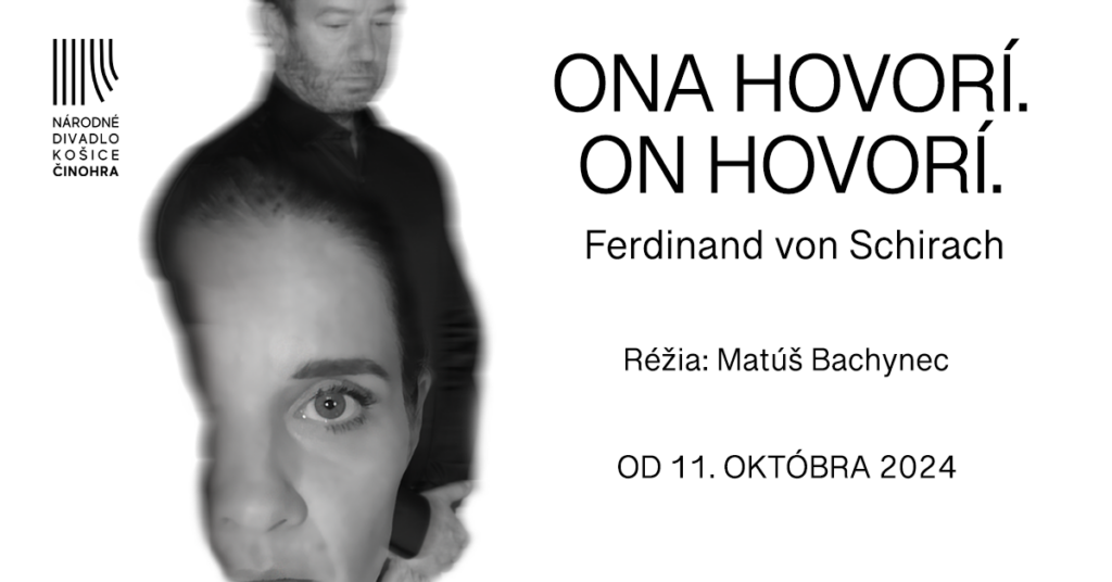 Najnovšia Schirachova hra ONA HOVORÍ. ON HOVORÍ. je drámou zo súdneho prostredia, v ktorej sa zaoberá témou znásilnenia. Ona hovorí jedno a on tvrdí niečo iné, a vôbec nie je jasné, na čej strane je pravda. Balansuje na hrane našich predsudkov či potenciálnych očakávaní a rozhodne nevytvára postavu jednoznačnej obete, a jasného páchateľa. Rovnako ako v niektorých predchádzajúcich Schirachových hrách aj v tejto sú to práve diváci, ktorí budú rozhodovať o vine či nevine.