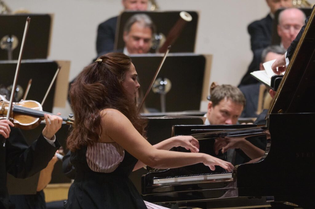 Dva veľké opusy publikum čakali na koncerte v rámci BHS. Prvý bol spomenutý Čajkovského Koncert pre klavír a orchester č. 1 b mol, op. 23 so sólistkou večera, ktorá získala v roku 2007 prvú cenu na prestížnej Súťaži kráľovnej Elizabethy v Bruseli. Anna Vinnitskaya od tých čias datuje aj svoju medzinárodnú kariéru. Už jej príchod bol neobvyklý – poznáte tie koncentrované tváre sólistov, zadumané, s minimálnym kontaktom s publikom. Vinnitskaya prišla na pódium ako energická smršť – usmiata, v radostnej nálade, rozhodná a plná života. Rovnako tak zo šéfdirigenta Wiener Symphoniker, vymenovaného od sezóny 2024/25, Petra Popelku, ktorý mal inauguračný koncert za sebou, sálala pohoda. Vravím si, dobrá voľba. Z takejto atmosféry nemôže vzísť zlý výsledok.