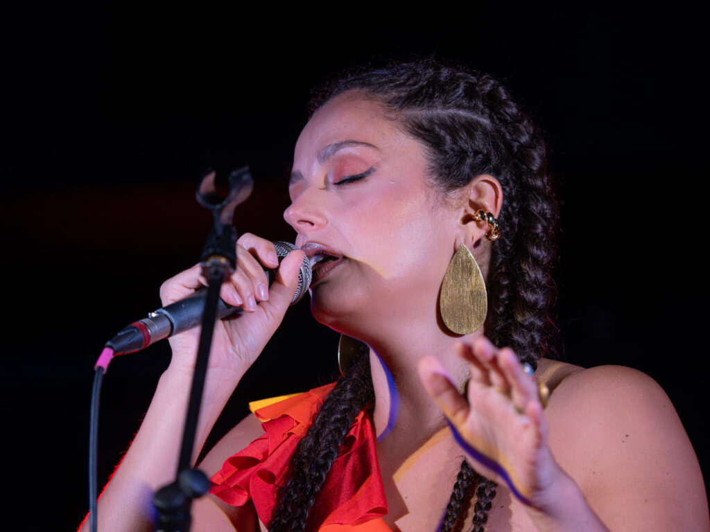 Nedala sa nevšimnúť intonačná čistota speváčky Irene Scarpato, jej veľké spektrum farieb a výrazová presvedčivosť, s akým piesne stvárnila. Či už to boli serenády alebo dojímavo-smutné až plačlivé príbehy či temperamentnejšie skladby, publikum sa do každej dokázalo vcítiť. Vzácna bola aj jej vyváženosť dynamiky – nikdy hlas neforsírovala, pritom vedela dosiahnuť aj dramatickejší výraz. A taktiež vyváženosť registrov –tóny interpretovala bezchybne, najmä dlhé boli sebaisté, nenašli ste v nich ani jediného zakolísania. Takáto čistota prejavu sa vidí skutočne vzácne. Aj z rozsiahlejších inštrumentálnych introdukcií vo voľnej rytmike, po ktorých nasledovalo vrúcne sólo spevu, ste už mohli vytušiť, že to bude bolestný príbeh so spomienkami do minulosti. A tie mali živší charakter. Slovo, dikcia a deklamácia, bola v týchto prípadoch absolútne podriadená hudbe. Niekedy to boli akoby nedopovedané príbehy, zážitky, ktorých koniec ostal visieť vo vzduchu. Aj tým boli krásne a odzbrojujúce. Speváčka niekedy prešla do šepotu či rozprávania, obdivovali sme jej bohaté výrazové možnosti. Rozkošné boli aj piesne veselého charakteru, v mierne rýchlejšom tempe a keď už ste si mysleli, že vás v nich nič neprekvapí, zrazu prišlo omamné mandolínové sólo. To, čo ostalo nevypovedané v slovách, dopovedala mandolína – práve tá bola nositeľom nových myšlienok a obsahu. To všetko v absolútnej rytmickej pregnantnosti. Možno tieto technické poznámky môžu trochu rušiť, no práve v tom bola interpretácia Suonno d’Ajere uveriteľná a presvedčivá.