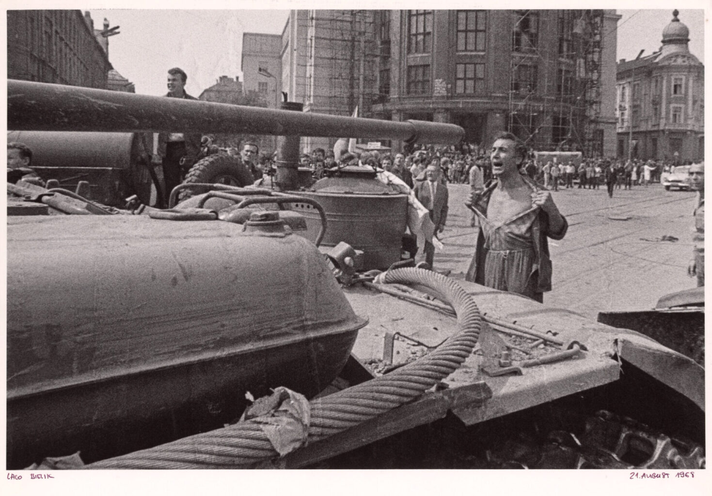 Aj Bratislava bola miestom, kam 21. augusta 1968 vtrhli tanky, aby zničili slobodu. Ladislav Bielik ich zachytil na svojej slávnej snímke Muž s odhalenou hruďou pred okupačným tankom. Fotografia, ktorá sa stala ikonou nenásilného odporu a v roku 1968 bola zaradená do výstavnej kolekcie World Press Photo, zobrazuje stojaceho Bratislavčana Emila Galla pred tankom, ráno, v prvý deň okupácie. Vďaka zahraničným agentúram a médiám sa fotografia dostala do celého sveta a spolu s ňou aj obraz napadnutej zeme. Originálny negatív fotografie zo dňa, ktorý zásadne zmenil smerovanie našej krajiny bol dlhé roky ukrytý. V decembri 1989 ho syn Ladislava Bielika, Peter Bielik objavil spolu ďalšími negatívmi, v starom kufri v pivnici.