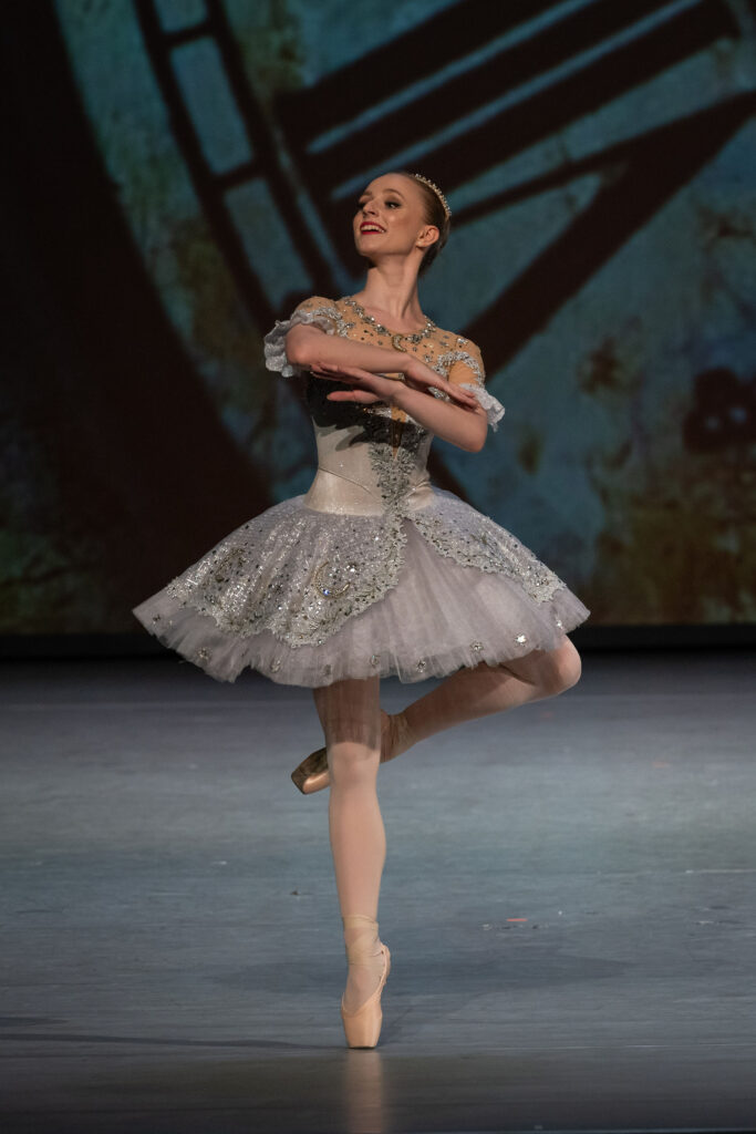 Gabaniová mala osobný šarm – bez neho je nemysliteľné túto postavu stvárniť. Aj z hudby počuť rafinovanosť a zvodnosť, čo sa odrazilo vo výraze, pri zrýchlení tempa sa žiačka koncentrovala na technické prvky a ich čistotu. Z tohto baletu sme videli v naštudovaní Rafaela Avnikjana aj Variáciu v podaní S. Koike (získala prvé miesto na baletnej súťaži VIBE 2024). Je to technicky disponovaná, presná tanečnica, na pódiu zaujala krehkosťou a éterickosťou.