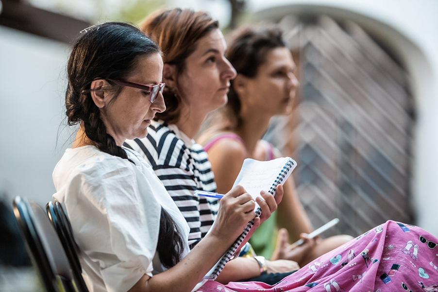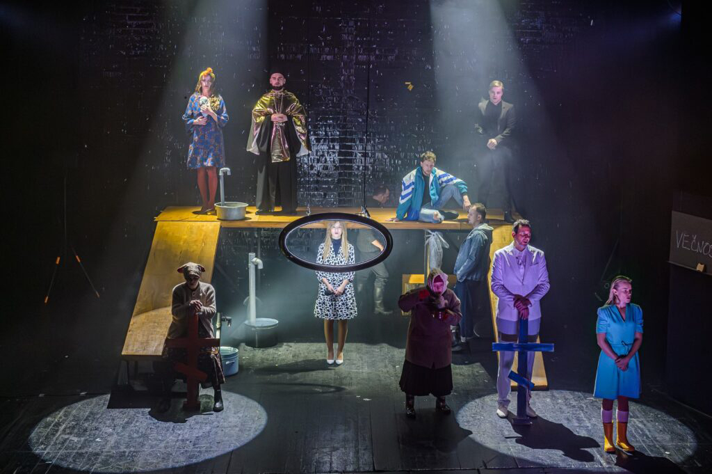 Samotné skúšanie. A, samozrejme, brainstorming – čo tam bude, čo nebude. Prichádza fáza spochybnenia, či môže fungovať to, čo sme vymysleli alebo nie. Potom, keď už skúšame, tak to proste musí fungovať (smiech). Vyzerá to jednoducho, ale je pravda, že v zákulisí je jedno šialenstvo. Najdôležitejšia vec z pozície réžie je postaviť si svoj dream team a mať tých správnych ľudí. Ak sa to podarí, vie byť celý proces veľmi inšpiratívny aj pre komunikáciu. Scénografi, kostýmoví výtvarníci, ktorí rozmýšľajú až priam dramaturgicky – to si veľmi vážim na všetkých spolupracovníkoch. Sú to vzácni ľudia v tom, že ku každej svojej práci pristupujú na novo a snažia sa vytvoriť niečo jedinečné. Som nesmierne rada, že aj pri Šeptuchách sa podarilo zložiť takýto tím, a že tá kombinácia jednoducho fungovala. Keď sme už vedeli, že ideme robiť práve tento titul, ľudia sa v hlave sami ponúkli.