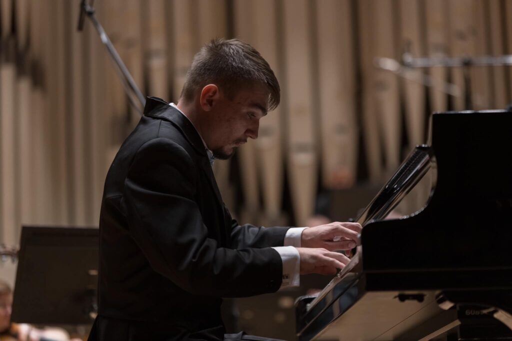 V prvej téme sonátovej formy úvodnej časti orchester akcentoval tanečný charakter, bolo to pekné piano a drevené dychové nástroje zneli mäkko. Pred nástupom klaviristu orchester ešte stíšil – uspôsobil dynamiku nastupujúcemu klavíru, ktorý bol v téme nádherný. Hruška dokázal zachytiť vnútorné, melancholické nálady a keď prišlo na rozvedenie, jeho virtuózny charakter hral s ľahkosťou. Technicky brilantne, no nie so samoúčelnou virtuozitou. Orchester bol skvelým partnerom pre sólistu, dokázal vystihnúť nálady, aj temné farby, rovnako tak lyrické. Klavirista dobre chápal kulminácie, vedel ich z intímnych, jednoduchých motívov dôsledne, no zároveň prirodzene gradovať.