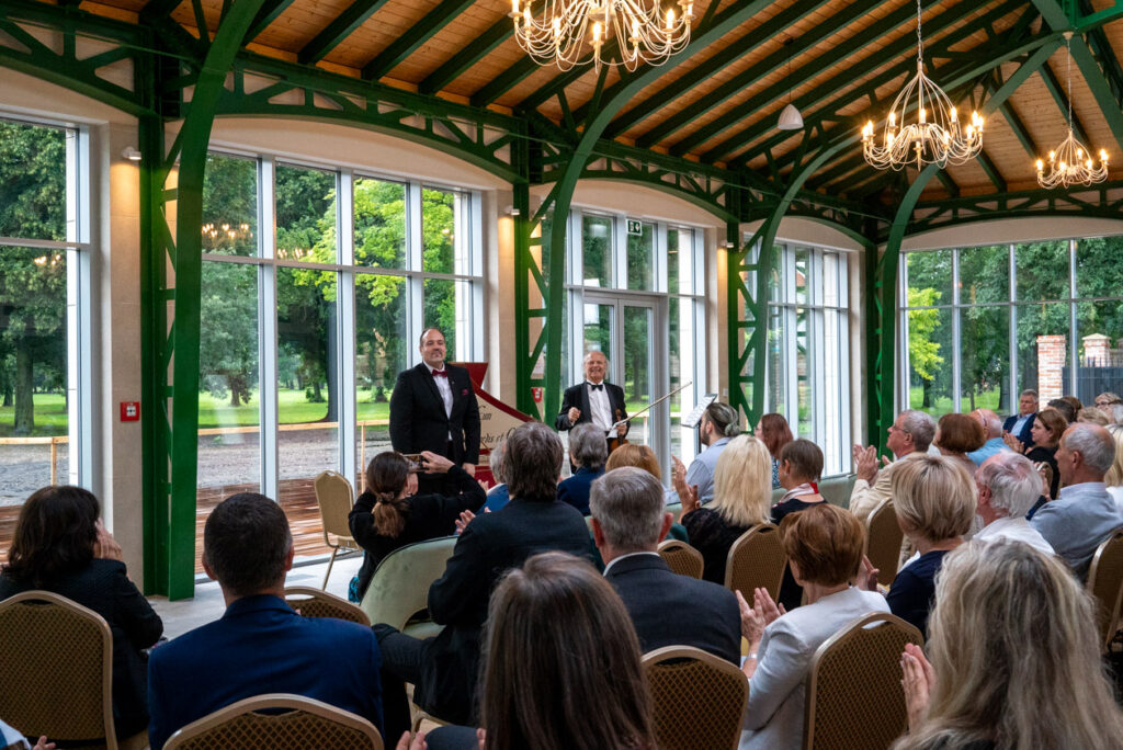 Prvý z koncertov, na ktorom duo Hudeček – Hroch, vystúpili, sa konal konkatedrále svätého Mikuláša v Prešove, ďalší v kaštieli v Orlovom a napokon uviedli svoj program v kaštieli vo Voderadoch. Malá obec v okrese Trnava vás privíta malebným námestím s rímskokatolíckym kostolom sv. apoštola Andreja z roku 1674, oproti ktorému stojí Zichyovský kaštieľ. Jeho „stavebné hmoty zodpovedajú najbežnejšej podobe a funkcii obytno-reprezentačných sídel troch storočí novovekej Európy – hlavné krídlo v čele a po stranách kolmé krídla zvierajúce pravouhlé nádvorie. Pre takýto efektný priestor nástupu do sídla sa dodnes používa termín „Čestný dvor“ (Cour d'honneur),“ píše Peter Kresánek o pamiatke. O kaštieli vo Voderadoch, ktorý prešiel zásadnou prestavbou, sa ďalej dozvedáme, že sa rekonštruuje a postupne nám pred očami vstáva z popola zásluhou majiteľa Pavla Bohdala a jeho manželky Kataríny. Rekonštrukcia sa realizuje postupne, s vážnym prístupom, rešpektom a odbornou pravdivosťou. Koncert sa konal v tzv. Erbovej sále. „Nad portálmi oproti sebe sa totiž nachádzajú erby rodov Zichy a Keglewich. Tie vypovedajú o tom, že výtvarnosť sály (alebo minimálne časti nad dverami) pochádza z obdobia po roku 1909, kedy do tejto voderadskej línie rodu Zichy pribudol zať František Keglevich,“ uvádza ďalej Kresánek.