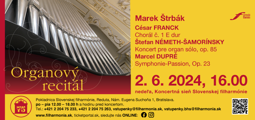 V nedeľu 2. júna 2024 o 16.00 sa v Slovenskej filharmónii uskutoční organový recitál Marka Štrbáka,...