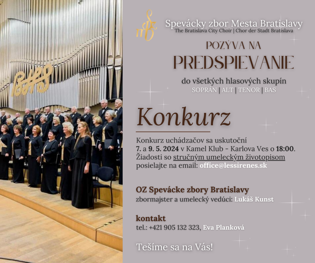 Konkurz do Speváckeho zboru mesta Bratislavy! Ak máte skúsenosti so spevom, prihláste sa!