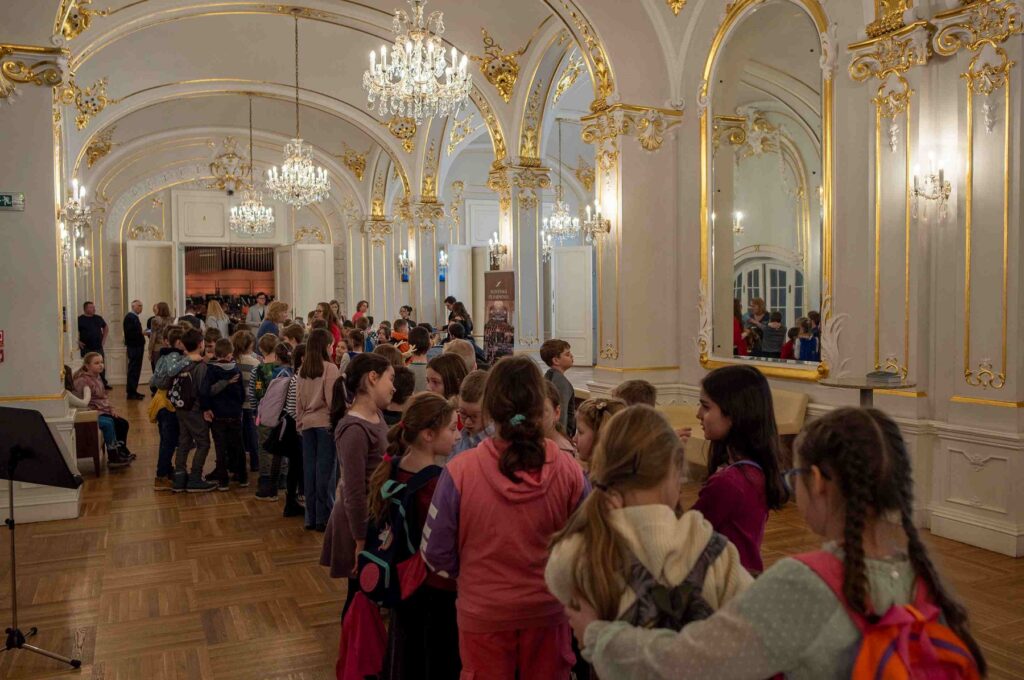 Zoznámili sa aj s generálnym riaditeľom SF Mariánom Turnerom. Dozvedeli sa, že v Slovenskej filharmónii sa narodil Chlapčenský filharmonický zbor, ktorý dnes poznáme ako Bratislavský chlapčenský zbor. Zažili konkurz a sami rozhodli, kto v ňom uspel. Na malú chvíľu sa sami stali Filharmonikmi a interaktívne sa zapájali do atmosféry koncertu.