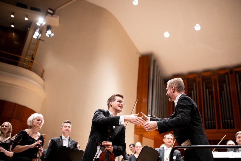 Nasledoval Violončelový koncert č. 1 a mol, Op. 33, dielo francúzskeho skladateľa Camille Saint-Saënsa, ktoré patrí do základného repertoáru ako jeden z piatich najhrávanejších violončelových koncertov. Znel v podaní nemecko-švajčiarskeho violončelistu Emanuela Grafa, výnimočný hráč, ktorý je od roku 2014 prvým sólovým violončelistom v Bavorskej štátnej opere v Mníchove (orchester vedie Kirill Petrenko). Od prvého momentu ste vedeli, že na pódium vstúpil hudobník srdcom i dušou, ktorý rozdáva radosť. A je skvelý muzikant. Navyše, hrá na nástroji Stradivari, ktorý sa vyznačuje špecifickým, prekrásnym, mäkkým, no o to farebnejším tónom. Možno nie je až taký „hlučný“, no práve tá sofistikovanosť zvuku a jeho bohaté alikvoty vás očaria. A keď sme už pritom, na hudobnom nástroji Stradivari nevie hrať každý – je to nástroj, ktorý má dušu, hudobník s ním musí splynúť, zžiť sa s ním, zvyknúť si naň a hudobný nástroj sa mu odmení nekonečnou krásou a oddanosťou. Toto splynutie „duší“ sa Grafovi podarilo.