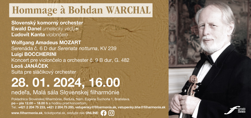 Na nedeľnom koncerte si pripomenieme nedožité 94. narodeniny prof. Warchala (27.01. 1930 – 30.12. 2000). Prof. Bohdan Warchal bol v roku 1960 iniciátorom vzniku komorného súboru. Komorný orchester zostavil z vynikajúcich hráčov sláčikovej sekcie orchestra Slovenská filharmónia. “Warchalovci” pod jeho umeleckým vedením koncertovali nielen v slovenských mestách, ale uznanie dosiahli v mnohých svetových metropolách. Popri hudbe baroka sa venovali aj dielam z obdobia klasicizmu a romantizmu, dielam 20. storočia a skladbám slovenských skladateľov Eugena Suchoňa, Alexandra Moyzesa, Ilju Zeljenku, ktoré vznikli na podnet prof. Warchala, alebo ich tvorcovia darovali komornému orchestru. Prof. Bohdan Warchal viedol komorný orchester s malou nečakanou pauzou celých 40 rokov. Štafetu umeleckého vedúceho odovzdal Ewaldovi Danelovi, ktorý od januára 2001 v tejto práci pokračuje.
