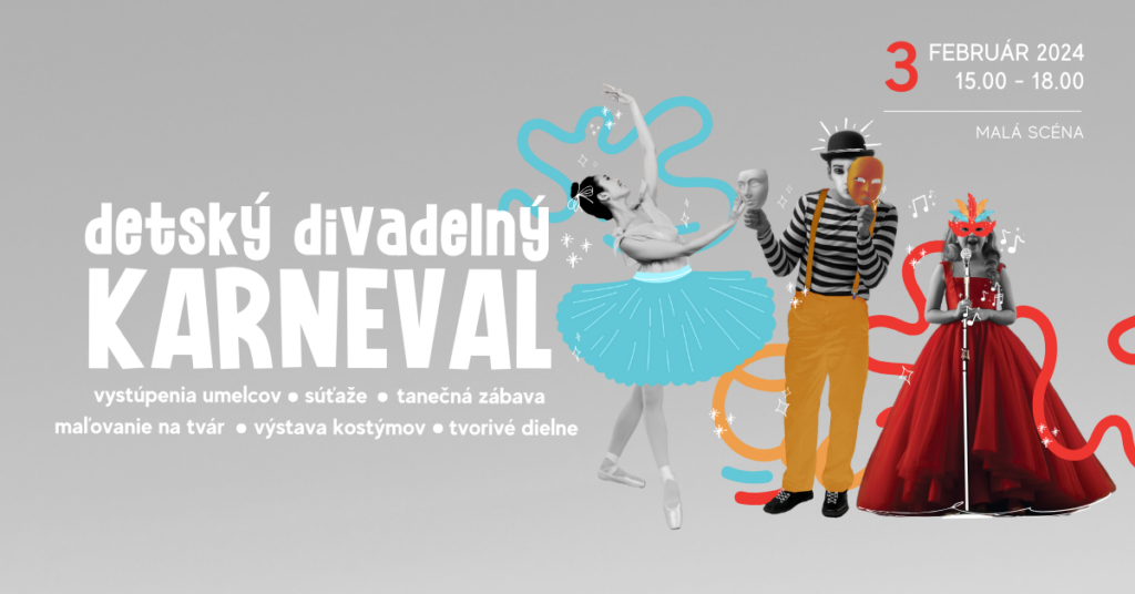 Karneval bude samozrejme venovaný našim najmenším. Tešiť sa môžu na množstvo zábavy v priestoroch Malej scény NDKE. Nebudú chýbať tvorivé dielne, maľovanie na tvár, výstava kostýmov, súťažné aktivity, interaktívne hry s hercami činohry, tanečná zábava pod vedením sólistov baletu či skvelý hudobný program, o ktorý sa postará súbor opery.