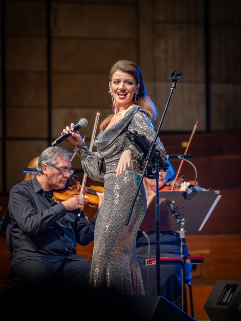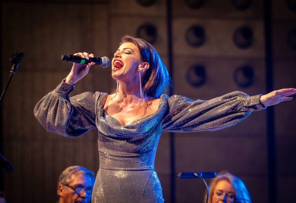 So speváčkou Ivanou Regešovou ani nemohol koncert pokračovať lepším „tempom“. Pieseň Cítim spievala s prirodzene jazzovým fílingom, aký v origináli nie je. Bol to Regešovej osobný vklad – niečo, čo nikdy nezískate drilom, musíte to frázovanie a vnútornú swingovú pulzáciu cítiť. Speváčka túto dispozíciu má: skracovanie fráz, namiesto dlhého, lyrického tónu v závere frázy, akým spieva túto pieseň Duchoň, dodalo skladbe úplne nový pocit. Nie však natoľko, aby ste túžili po originálnej verzii, naopak. Ivana Regešová je typ speváčky, ktorá má charakteristickú farbu a objemný hlas, sýty, s ktorým vie pracovať. Nikdy nešla nad rámec dynamickej hladiny, akú si táto pieseň vyžadovala – zostal v nej šarm, dodala k nemu istú hravosť a rytmické zmeny, ktoré spravila, dodali piesni jazzovejší charakter. Nekopírovala pieseň ani melodicky, v mnohých prípadoch nízke polohy nahrádzala výškami – aj to dalo piesni nový dych. Okrem toho – na pódiu veľmi dobre vyzerá, srší z nej elegancia a noblesa. Možno sa mladá generácia bude čudovať, ale v minulom storočí boli dámy krásne oblečené (áno, v róbach, nie v roztrhaných rifliach) a mali v sebe sexepíl. Nie vyzývavý, ale dámsky – zvýrazňujúci ženskosť (netuším, čo dnes mnohé ženy na sebe podčiarkujú, ale v kútiku duše šípim, že ženskosť to asi nebude). Bol teda zážitok nielen počúvať ju, ale aj dívať sa na ňu. Keďže s orchestrom spieva už roky, dokázala komunikovať tak s muzikantmi ako i s publikom. V piesni Cítim zaznelo aj skvelé saxofónové sólo, ktoré síce spravidla znie vo väčších obsadeniach, no v dynamickej piesni v tempe, sadlo ako uliate.