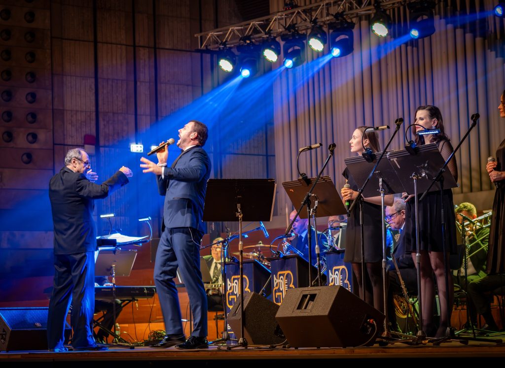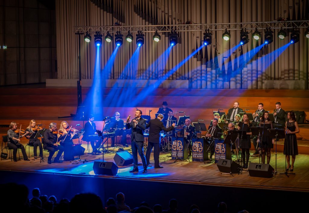 Keď sú piesne interpretované so živou hudbou a nie na half-playback, je to obrovská pridaná hodnota. Sólový interpret nie je otrocky viazaný na predlohu, počas predstavenia sa dajú v hudbe vytvoriť nové nuansy a samozrejme – ten zvuk živého bandu je nezameniteľný. Počuli sme ho už v prvej pesničke – Na srdci mi hraj. Poézia textov, aké sa písali v minulosti, no dnes tak chýbajú a zväčša sa obmedzia na krátke strofy s nekonečným spievaním refrénu (zväčša simplicitného, uspôsobeného poslucháčovi predškolského veku), musí byť podporená dobovou hudbou – big bandom, ktorý má nezameniteľnú zostavu dychových nástrojov. Trúbky, trombóny, saxofóny, klarinety, spočiatku aj krásne melodická a mäkká flauta, spolu s rytmickou zložkou – klavír, basgitara a bicie, tvoria ten nezameniteľný zvuk, ktorý publikum mohlo počuť naživo. Žiadna nahrávka nenahradí nezameniteľnú pulzáciu jazzových riffov a drive, ktorý naživo takýto orchester dokáže vytvoriť. Dopĺňala ho štvorica hráčov – sláčikárov Slovenskej filharmónie a SND pod vedením Vladimíra Harvana.