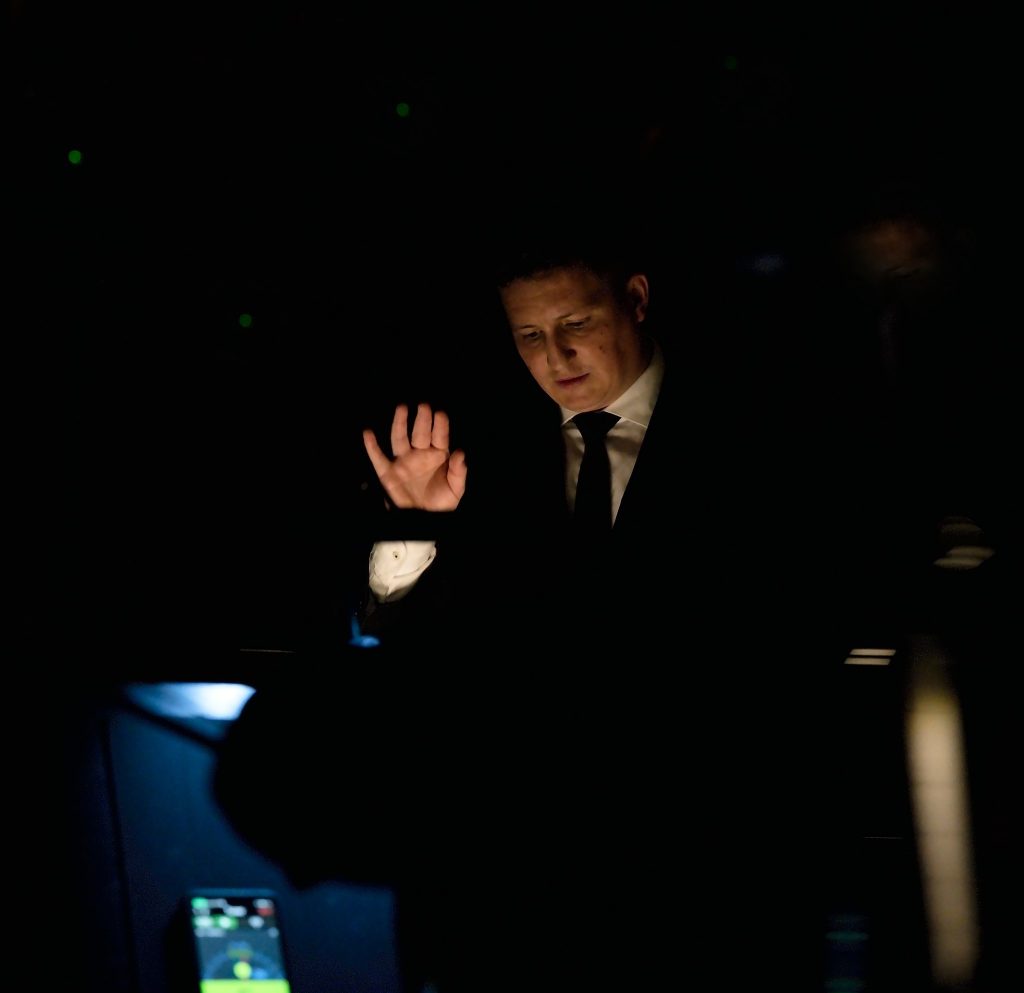 A práve tento rozpor bolo cítiť v diele. Na jednej strane jeho poetickosť a krása, spoločne so „snežením“ vo filharmónii (svetelná projekcia: Martin Viskup, Samuel Hagara, Antonín Kindl), do ktorého ste sa mohli priam ponoriť a zrazu ste mali dojem, že tento vizuálny úkaz sa zmenil na prírodný. V istom momente, keď bolo „sneženie“ intenzívnejšie, ste dokonca akosi reflexne zatvárali oči, aby vám do nich nenasnežilo. Bol to zážitok živý a intenzívny. Aj preto, že všetky tie rozmanité zvukové obrazy snehu, ktoré hudba vytvárala, sa blížili k onomatopoickým. Poznáte ten pocit, keď kráčate v čerstvo napadanom snehu a začne vám vŕzgať pod nohami? Niet krajšieho zvuku. Presne táto poézia bola v hudbe. Na druhej strane však, racionálna a komplikovaná konštrukcia – výzva pre každého dirigenta a muzikantov, aby bol výsledok pocitový, silne zážitkový, nie len presne interpretovaný rytmus, ale i farba a výsledná podmanivosť hudby. Sloboda je skúsený dirigent – ak ste sa naňho dívali, bol to úplne iný spôsob dirigovania ako je interpretácia klasických diel. Presný, komunikatívny, minimalistický v gestách, no mimoriadne pozorný, precízny, ak ste mali pocit, že je len technický a racionálny, rozhodne to tak nebolo. Každá jedna pomlčka v tomto diele má význam, každý jeden tón a najmä jeho farba. Komorné zoskupenie viedol s istotou, striktnými gestami, sofistikovane, logicky a najmä – súčasne. Žiadne patetické, veľké oblúky, no pritom intenzívna komunikácia. Hráči boli pripravení, frázy ukončovali s obdivuhodnou presnosťou, nástupy jednotlivých sólových nástrojov, vrstvenie zvukov, bolo bez zaváhaní – až matematicky presné (v tom najlepšom slova zmysle).
