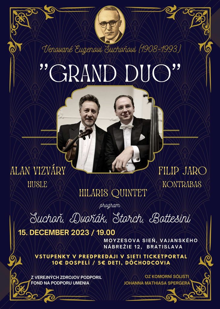 Na koncerte Koncert Grand Duo, ktorý sa uskutoční v piatok 15. decembra v Moyzesovej sieni o 19.00, odznejú aj diela Antonína Dvořáka, Jozefa Emanuela Storcha a Giovanni Bottesiniho. Ide o prierez romantickou hudbou spojenou zo Slovenskou modernou.