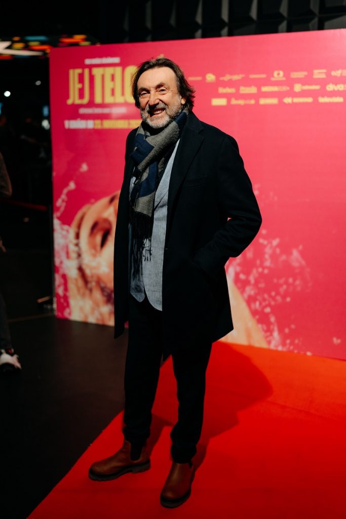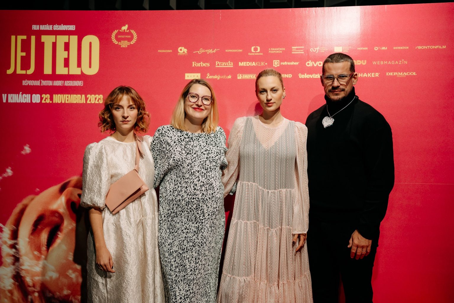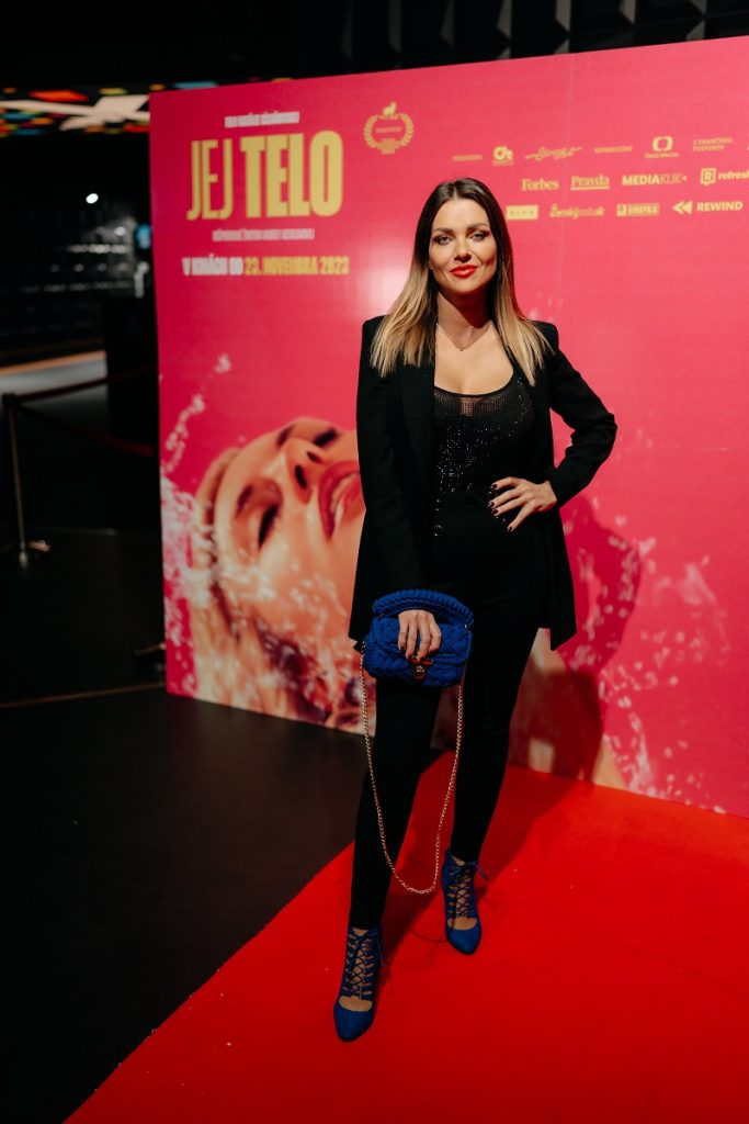 Na slávnostnej premiére jej robil spoločnosť manžel Martin Valihora, ktorý si vo filme zahral hereckého partnera hlavnej hrdinky pri nakrúcaní jej prvej pornoscény. Súčasťou slávnostnej delegácie bola režisérka a spoluautorka scenára Natálie Císařovská, hudobný skladateľ Jonatán Pastirčák, alias Pjoni, slovenská producentka Katarína Krnáčová, herci Tereza Švejdová a Roman Polák či výkonná producentka Kristýna Drozdová. Film prišla na Slovensko predstaviť aj reálna sestra Andrey Absolonovej Lucie Andělová Absolonová, bývalá profesionálna skokanka do vody, ktorá pôsobí ako filmová kaskadérka, aktuálne s krátkou pauzou, keďže je na druhej materskej dovolenke. Lucie spolupracovala na filme Jej telo ako konzultantka pri tvorbe scenára a pomáhala tiež s technickým stvárnením skokov do vody a športových scén herečiek Natálie Germáni a Denisy Barešovej.