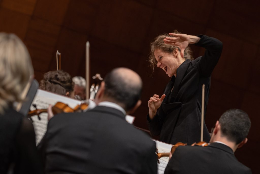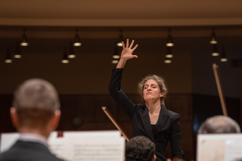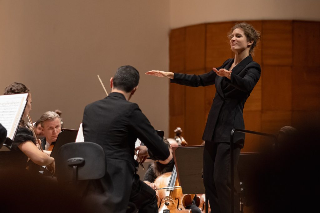 Orchester si počínal veľmi dobre, odviedol rytmickú presnosť, vo výraze dbal na detaily, dynamicky hral v zmysle partitúry, do každého detailu, dirigentka úžasne pracovala s gradačnými prvkami, azda len tympanistovi by sa dalo vyčítať, že jeho forte bolo cez hranicu v mnohých prípadoch. Aj forte sa dá (priam musí) zahrať mäkšie a v citlivejšom balanse s orchestrom (dokonca majú tympany aj v tejto časti predpísané piáno).