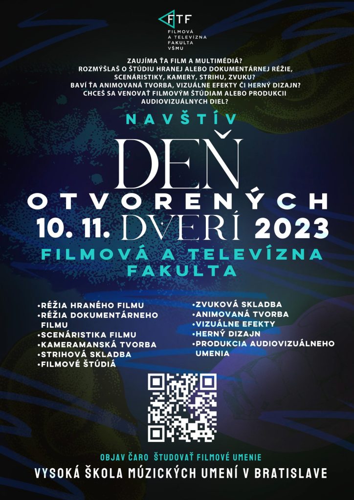 Deň otvorených dverí bude prebiehať v budove FTF VŠMU v Bratislave na Svoradovej 2/A, presný časový harmonogram záujemkyne a záujemcovia nájdu na webovej stránke Filmovej a televíznej fakulty VŠMU.