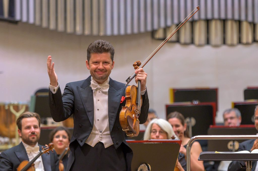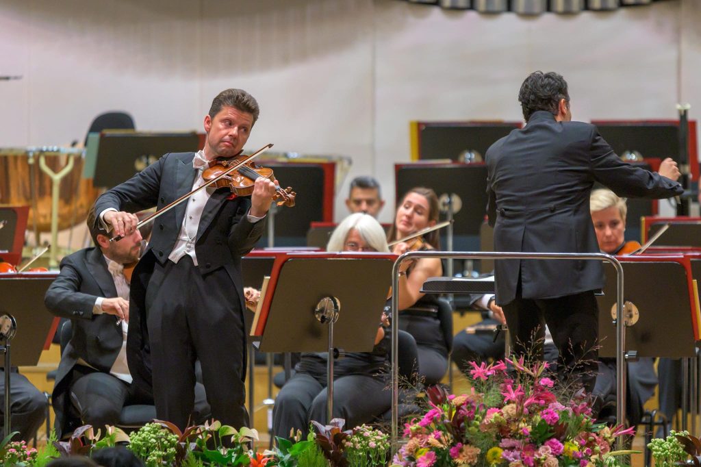 Wolfgang Amadeus Mozart a jeho Koncert pre husle a orchester č. 3 G dur, KV 216 so sólistom večera Julianom Rachlinom pokračoval ako ďalší bod programu. Prvá, rýchla časť Allegro predstavila jednotne, masívne znejúce sláčiky. Ak by ešte orchester zvýraznil viac kontrast, na ktorom je stavaný úvod, veľké forte a hneď za ním piáno, možno by interpretácia bola ešte vitálnejšia. No presne to orchestru Filarmonica della Scala nechýbalo – plynulosť, sviežosť, vitalita a zároveň ľahkosť. S tou majú mnohé orchestre pri interpretácii Mozarta problém. Ťažkopádnosť tomuto autorovi nesvedčí. Hudobníci síce dokázali vyzdvihnúť aj vážnosť charakteru, no nikdy nie ťažkopádnou hrou. Presne takýto úvod pristal sólistovi večera. Svižnosť, dobre nastavené tempo, ale i dynamika, poskytli priestor na to, aby Rachlin vynikol. Tento interpret to robí s eleganciou, prirodzenosťou, máte pocit, že aj so štipkou romantizmu, no práve ten tam nie je. Jeho hra je klasická, svojská, s mimoriadnym osobitým vkladom vo frázovaní, ktoré sa na pohľad javí voľnejšie, ale pritom je disciplinované, má však v sebe podstatne viac muzikantskej slobody. A samozrejme – jeho tón a spevnosť. No pritom bol tento sólista mimoriadne citlivým hráčom – nebolo jeho zámerom vynikať, nechať orchester v úzadí, tak ako huslista, bol dôležitý v kontexte hudby i orchester. Jeho sóla, ktoré často dopovedali dychy, nezanikali, harmónie zneli plnohodnotne, ľahká textúra bola podčiarknutá, akcenty vyhraté muzikálne, so zmyslom pre vnútorné napätie. Kadencia pred záverom prvej časti vynikala individuálnym štýlom Rachlina, jeho špecifickým frázovaním a unikátnym tónom.