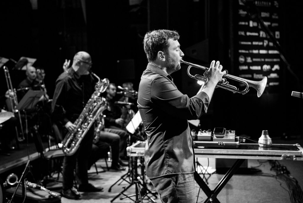 Občas áno. Tých smerov je viac, respektíve projektov je viac. Zo škatuľky tradičného jazzu je to náš program venujúci sa výročiam slávnych jazzmenov, ktorí už medzi nami nie sú. Každý rok je to iná významná postava, ktorá má okrúhle výročie. Uvádzame ich skladby, ktoré si často sami aranžujeme a bežne máme aj zahraničného hosťa. V minulosti to boli napríklad Duke Ellington, ale tiež Gil Evans, Clark Terry, Charlie Parker, Thad Jones a ďalší. Vyberám si veci, ktoré sú niečím zaujímavé, nemusia to byť tie najnotorickejšie známe mená a skladby. Trochu si tým tiež plním prianie, to bol napríklad prípad hudby Gila Evanse, ktorú napísal pre Milese Davisa. Veľký ansámbel s lesnými rohy, tubou a rôznymi plátkovými nástrojmi. Máme tiež netradičný vianočný program, ktorý sa každý rok čiastočne obmieňa podľa toho, z ktorej krajiny pochádza náš hosť. Mali sme napríklad turné so skvelým holandským trombonistom a skladateľom Iljom Reijngoudom, s ktorým sme hrali jeho autorskú hudbu. Kmeňovým a hlavným repertoárom je však to, čo znelo dnes na koncerte.