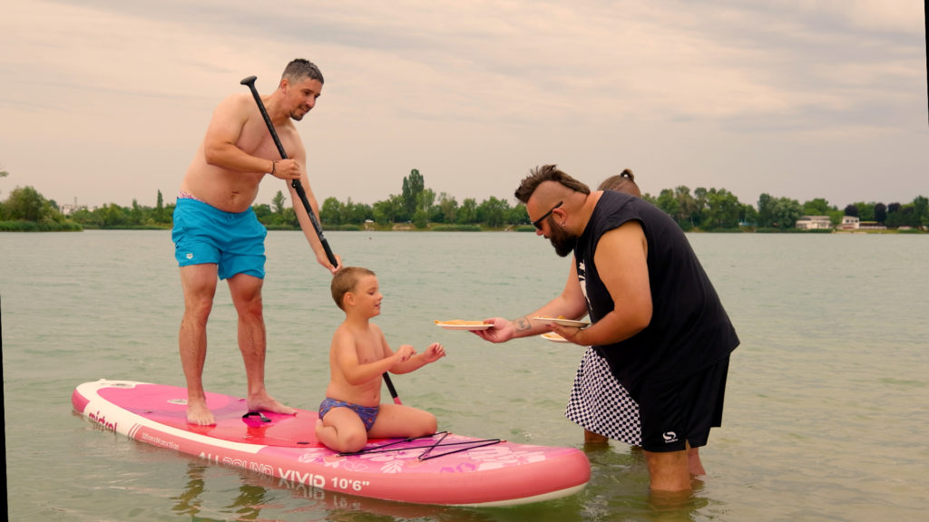 Vlastnoručne vyrobené palacinky si však Mickey s Petrom Šandorom nenechali iba pre seba. Rozdali ich zadarmo náhodným okoloidúcim a ponúkli nimi aj ľudí vo vode.