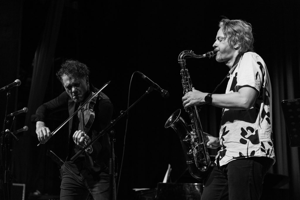 Najviac v ich programe bavili plynulé prechody, až skoky do odlišných štýlových epoch a žánrov. Po ukončení skladby zrazu plynulo, bez toho, aby ste cítili dramatický odklon, dokázali prejsť k skladbe Johna McLaughlina, britského gitaristu a skladateľa, ktorý patrí medzi pionierov fusion music, ktorý v rámci tvorby tvoril syntézu jazzu a world music. Skladbu Joy nahral McLaughlin v roku 1975 so skupinou Shakti, jej názov zodpovedá výrazu a rýchlemu tempu, no najmä vzájomným, radostným vzťahom z muzicírovania hudobníkov tejto skupiny s jazzovým muzikantom. Touto syntézou gitarista zmenil pohľad na históriu jazzu. Celú skupinu perkusií dokázali len v tomto obsadení nahradiť – zrazu ste mali pocit, že namiesto dvoch hráčov je na pódiu celý orchester. Ďalšia Telemannova Sonáta, A dur, op. 5 už znela inak. Podstatne viac sa vzdialili od pôvodnej barokovej predlohy, nielen v husliach, ale i vo flaute využívali čoraz viac jazzových farieb a nových prvkov, vďaka ktorým sa im podarilo odkloniť od originálu. V každom hudobnom čísle sa snažili využiť čo najrozmanitejšie nástrojové kombinácie, objavil sa aj basový klarinet, ktorý najprv hral len v nízkych polohách rytmické tóny, no neskôr sa v plnej svojej kráse ukázal aj ako melodický nástroj. Muzikanti neustále menili tieto pozície, hudobne najzaujímavejšie boli dlhé improvizačné úseky huslí, podfarbené basovým klarinetom. Ich inštrumentálna flexibilita nemala hraníc, po basovom klarinete sme počuli aj soprán saxofón v ďalšej Telemannovej sonáte, pomalú časť však nahradili vsuvkou od Mahavishnu Orchestra, pričom farebne sa skutočne dostali blízko k tvorbe tejto legendárnej formácie. Dokázali pôsobivo zahrať barokovú sonátu, tak aj Astora Piazzollu, Libertango (škoda, začína to byť skladba veľmi sprofanovaná, pomaly nenájdete teleso, ktoré by ju nehralo). Ako priznali, v mnohých úpravách skladieb im bol inšpiráciou rakúsky saxofonista Wolfgang Puschnig, ktorý často experimentuje so syntézou rôznych štýlov, je otvorený rôznym formám nového jazzu. Ich vystúpenie sa čoraz viac odkláňalo od pôvodných predlôh skladieb, čím si aj získalo pozornosť publika. Od rozmanitých zvukových plôch a hraničných polôh hudobných nástrojov sa títo dvaja hudobníci celkom prirodzene vedeli vrátiť do pôvodnej formy fúgy, ktorú uviedli v úvode. Najviac bavili na ich vystúpení práve tie kontrasty – žánrové, ktoré dokázali striedať s veľkým citom.