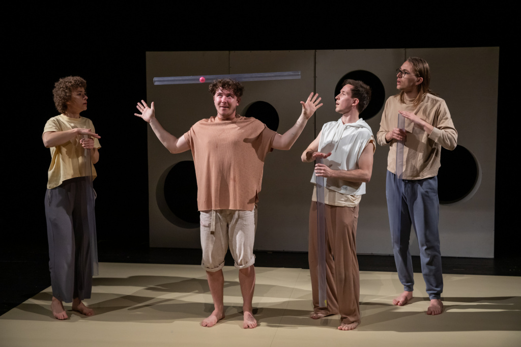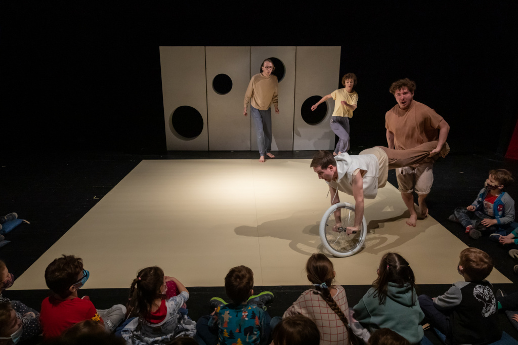 Vizuálne pôsobivá inscenácia bez slov OkololO odkrýva pohyby, zvuky a farby začarované v kruhoch. Štyria performeri v nej overujú zákony fyziky a nespútanosť imaginácie, pomocou guľôčok, koliesok či valcov zapájajú všetky zmysly divákov a ponúkajú podnety na rozvoj vnímavosti a fantázie detí od troch rokov. Všetko totiž cirkuluje – vzťahy, nálady, ročné obdobia, život, planéty. Vznik inscenácie z verejných zdrojov podporil Fond na podporu umenia.