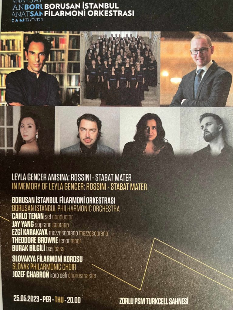 Vo štvrtok 25. mája 2023 večer vystúpil na pódiu prestížneho Zorlu Centre Istanbul s veľkým úspechom Slovenský filharmonický zbor, pod vedením svojho zbormajstra Jozefa Chabroňa. Prvé slovenské reprezentačné vokálne teleso, ocenené vo februári Oper! Awards ako najlepší európsky zbor za minulý rok, tu účinkovalo v diele Gioacchina Rossiniho Stabat Mater v spolupráci s Borusan Istanbul Philharmonic Orchestra a sólistami - sopranistkou Jay Jang, mezzosopranistkou Ezgi Karakaya, tenoristom Theodore Brownem a basbarytónistom Burakom Bilgilim.