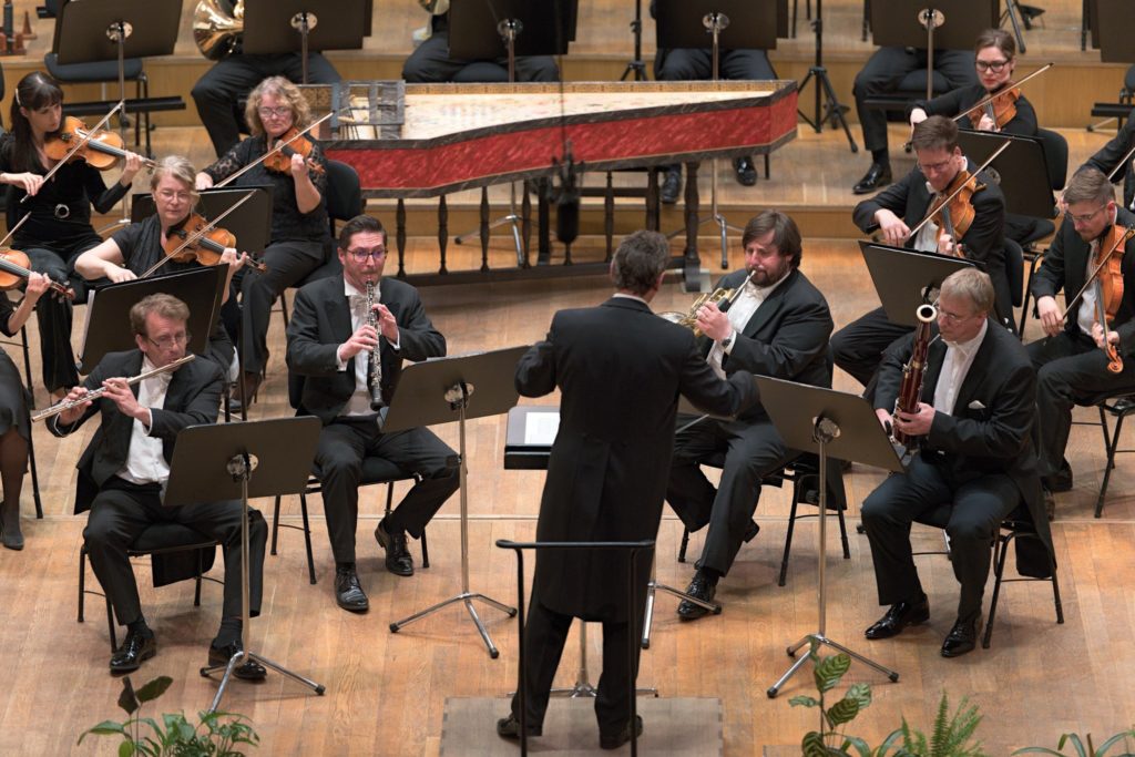 Prví hráči orchestra Slovenská filharmónia – flautista Cyril Šikula, hobojista Matúš Veľas, fagotista Peter Kajan a hráč na lesný roh Róbert Kis sa spoločne predstavili v Koncertantnej symfónii Wolfganga Amadea Mozarta Es dur, KV 297b. Úprimne sa priznám – nie, že by som si túto skladbu so záujmom púšťala mimo koncertných sál dobrovoľne vo voľnom čase. Mozart má nepochybne aj invenčnejšie, hĺbavejšie diela. Navyše, o autorstve tohto kusu sú pochybnosti, najmä čo sa týka inštrumentácie a orchestrácie, ktoré pre skladateľa nie sú charakteristické. Ďalšia skupina mozartológov je však presvedčená, že práve melodická invencia je pre autora typická. Každopádne, Koncertantnú symfóniu dnes uvádzajú ako dielo Mozarta a zámer koncertu bol jasný. Uviesť publiku sólových hráčov orchestra, ktorí majú v diele virtuózne časti. Na koncerte znel Mozart v rekonštruovanej verzii Roberta D. Levina s flautou ako sólovým nástrojom (len pripomíname, že práve Kaspar Zehnder je vyštudovaný flautista a je vynikajúcim hráčom), no všetky uvedené nástroje majú v diele dôležitú úlohu. „Kvarteto“ prvých hráčov orchestra Slovenská filharmónia si na svoje sóla počkalo – dielo otvára dlhá introdukcia. Tá pripravuje na nástup štyroch sólistov, ktorí sa majú stať centrom diania. Už len tá najmenšia chyba je vypuklou, sú to party v rýchlych tempách, ktoré ich v prvej časti publiku predstavia. Všetci štyria sólisti predviedli svoje sóla s energiou a a radosťou, ktorá k Mozartovmu (alebo skôr Levinovmu) štýlu patrí.