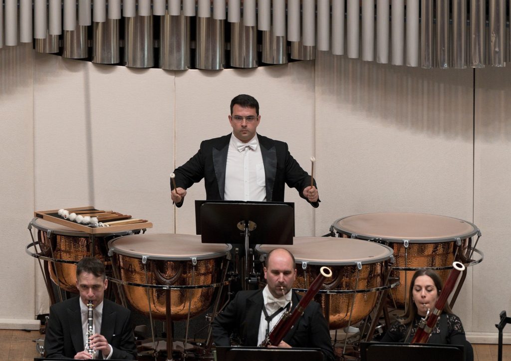 Počuli sme výrazný, svojím tónom charakteristicky prenikavý, poetický, bezchybný hoboj v podaní Matúša Veľasa, flautista Cyril Šikula interpretoval svoje party veľkých rozsahov s plynulosťou a gráciou, mnoho funkcií v skladbe má fagot – znel v rôznych polohách, od spodnej basovej linky, cez vrchnú, ale aj melodickú - fagotista Peter Kajan zvládol tento part bezchybne. Jediný part, pri ktorom je treba spomenúť výhrady, bol lesný roh. Najmä v záverečnej kadencii, precízne skomponovanej, sa objavili nečisté tóny a problémy s intonáciou (lesný roh Róbert Kis), čo bola nesmierna škoda, pretože práve elegancia lesného rohu a tiež obdivuhodný rozsah, je to, čo možno na tomto diele obdivovať. Škoda, že najmä v prvej časti symfónie dirigent trošku nezmiernil tempo, prípadne viac nečlenil časti, aby sa z nej nestali tak trošku uponáhľané preteky. Nezvyčajne dlhá pomalá časť diela, Adagio, predstavila dychové nástroje v lyrickej polohe. Konečne sme počuli aj pekný part lesného rohu v téme – v tejto komornej, subtílnej polohe je vskutku najkrajší, „romantickú“ flautu, precízne vystavaný dynamický part v krásnom legáte v podaní hoboja a spoľahlivý, znelý fagot. Zmysel pre lineárne vedenie hlasov v tejto časti poskytuje dychom tú najkrajšiu možnú prezentáciu aj vo vzájomne sa prepletajúcich úsekoch. Ich charakteristická farebnosť však nezanikla, hráči navzájom výborne kontrolovali svoj balans, takže sa nestalo, aby niektorý z nástroj spravil zvukovú „nadprácu“. Bolo to vkusné, pekne vyspievané Adagio.